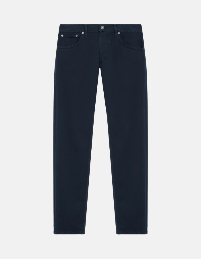 Brighton carrot-fit five-pocket jeans, low waist. Blue 11 1/2 oz bluesign APPROVED stretch bull denim. Bluesign garment dyed. Dondup logo. Made in Italy
