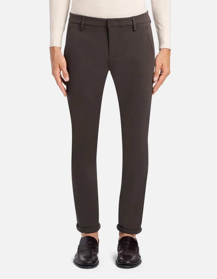 Gaubert slim-fit chino trousers, low waist, welt pockets at the back. Stretch Milano stitch. Dondup logo. Made in Italy