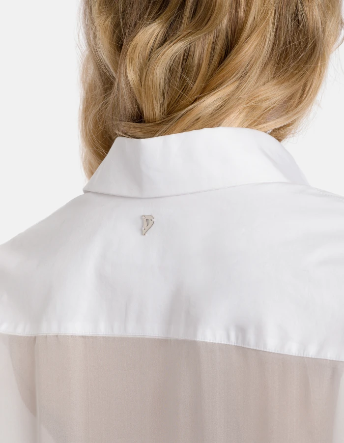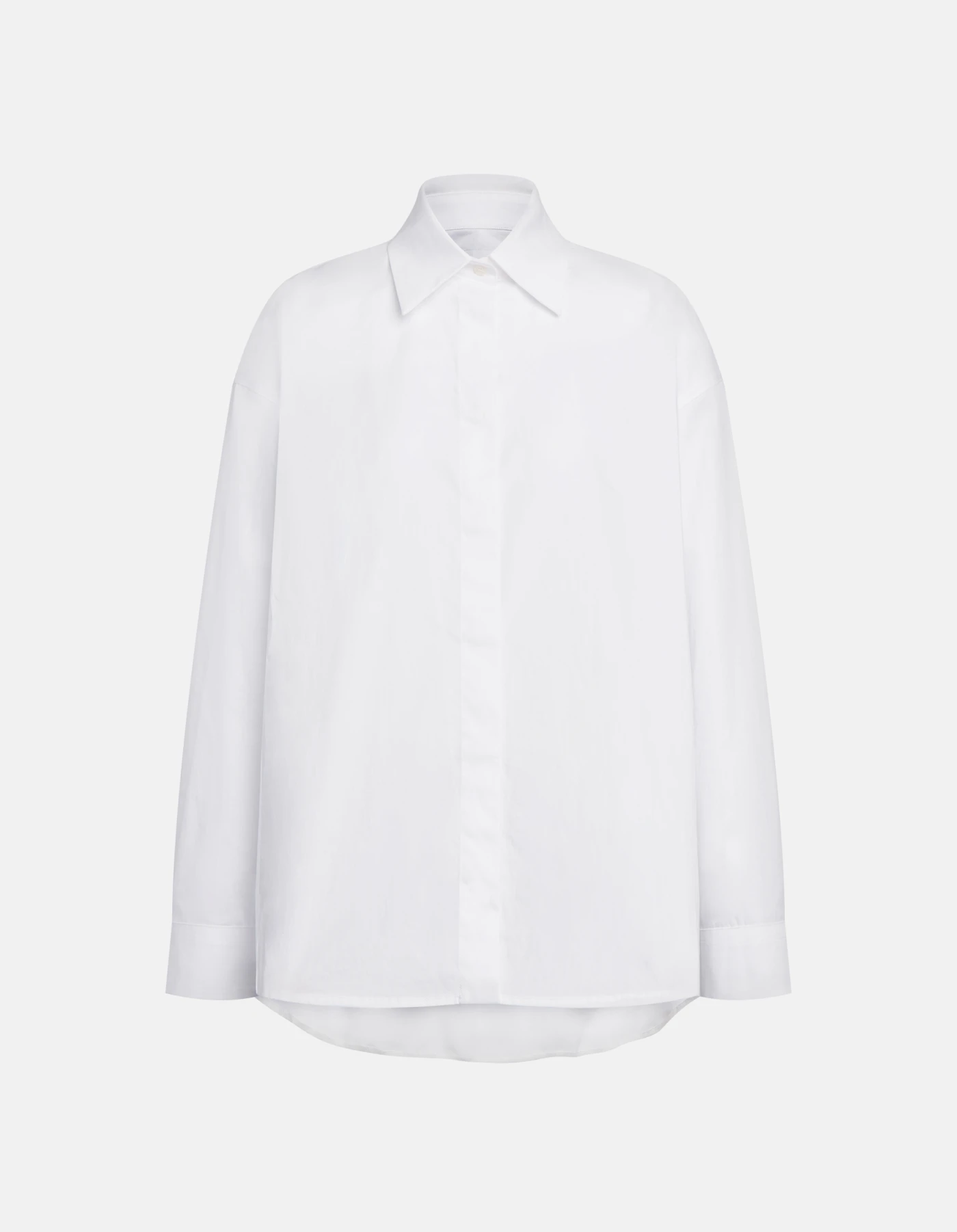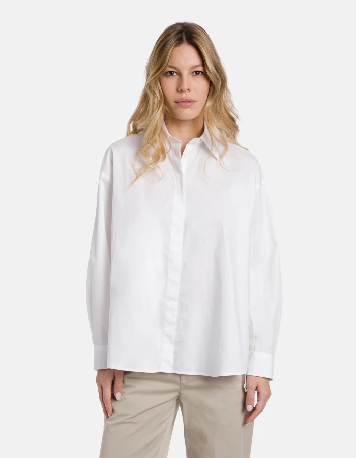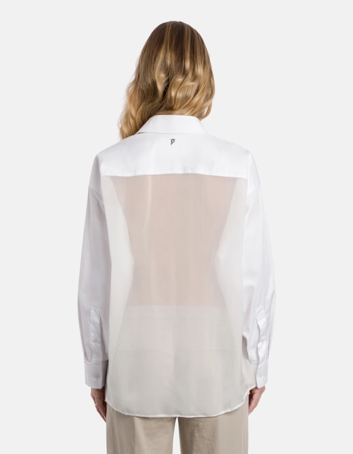 Oversized long-sleeved shirt with concealed front button fastening and voile back. Yarn-dyed gabardine. Dondup logo. Made in Italy