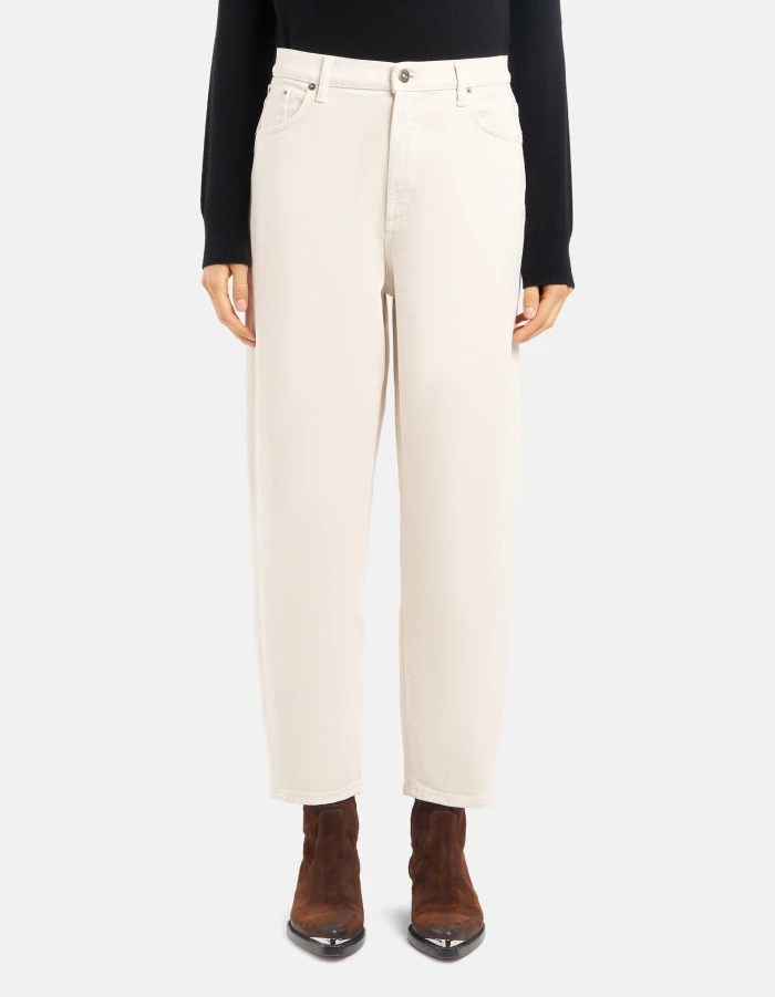 Bessie loose-fit five-pocket jeans, high waist. 11 1/2 oz bluesign APPROVED stretch bull denim. Bluesign garment dyed. Dondup logo. Made in Italy