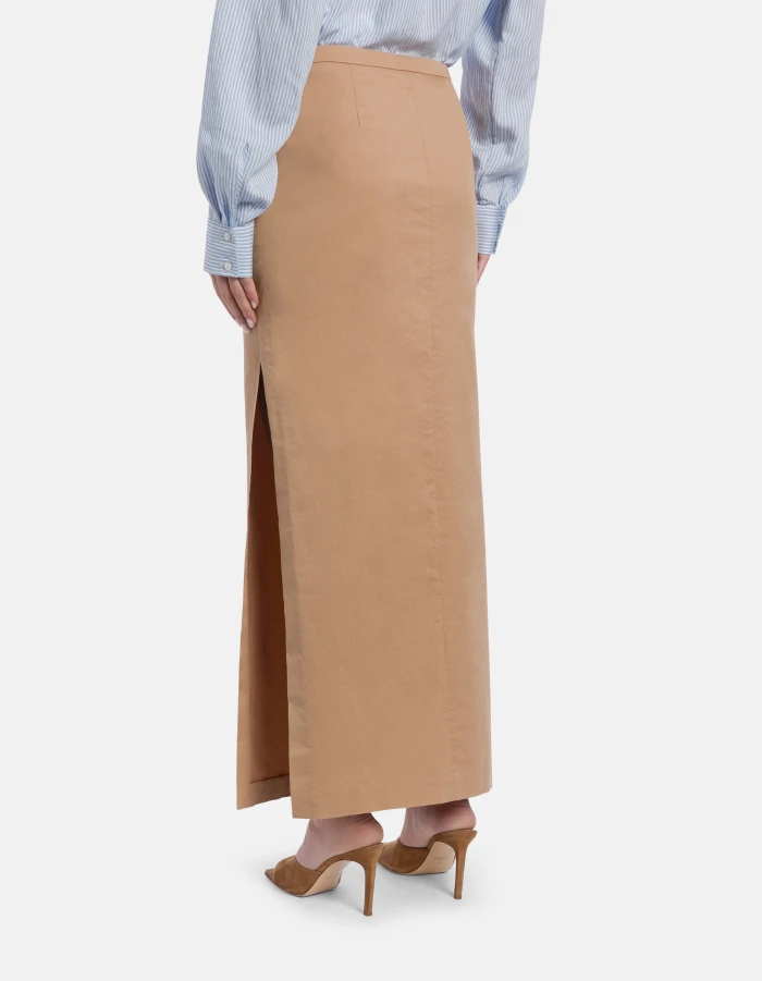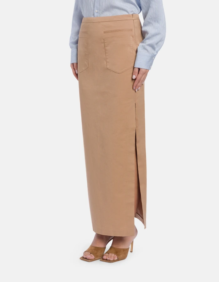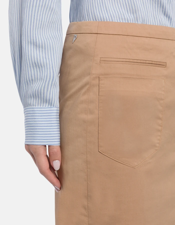 Long skirt with side slit, double welt and patch pockets at the front. Stretch gabardine. Dondup logo. Made in Italy