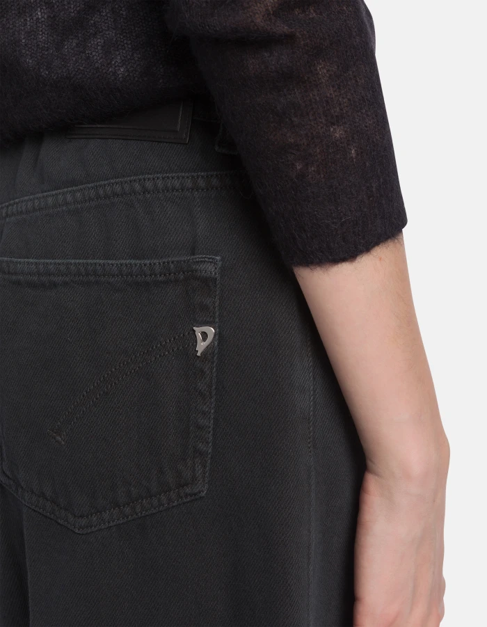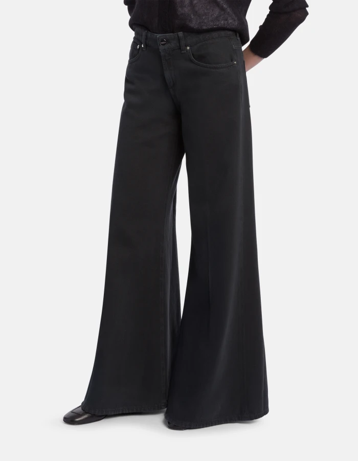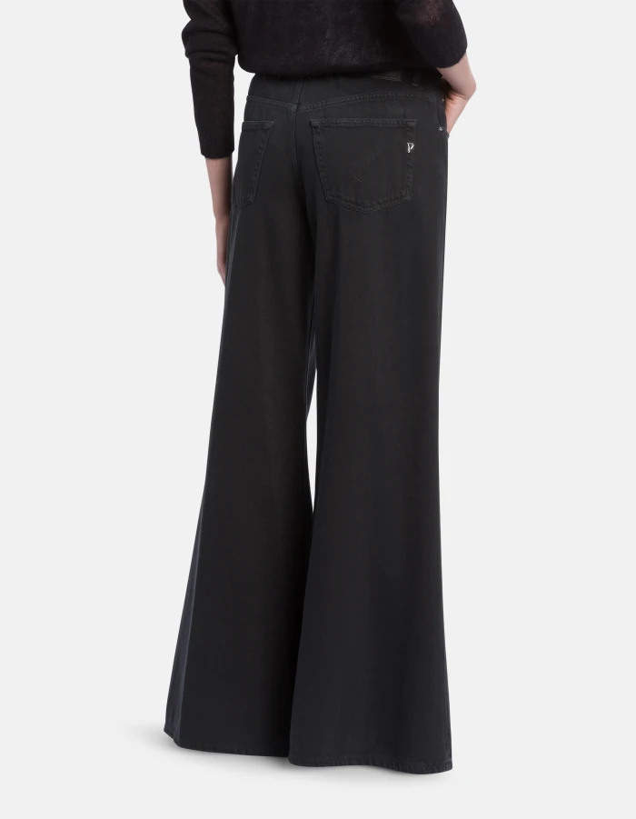 Marlen very wide leg 5-pocket jeans, regular waist. 10 1/4 oz bluesign APPROVED rigid bull denim. Garment-dyed. Dondup logo. Made in Italy