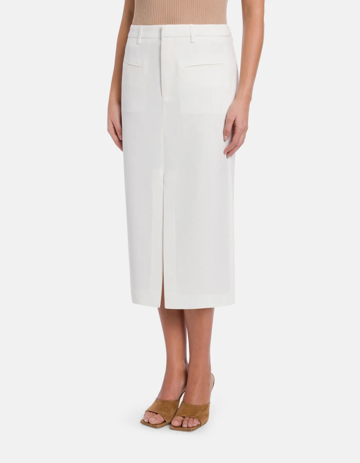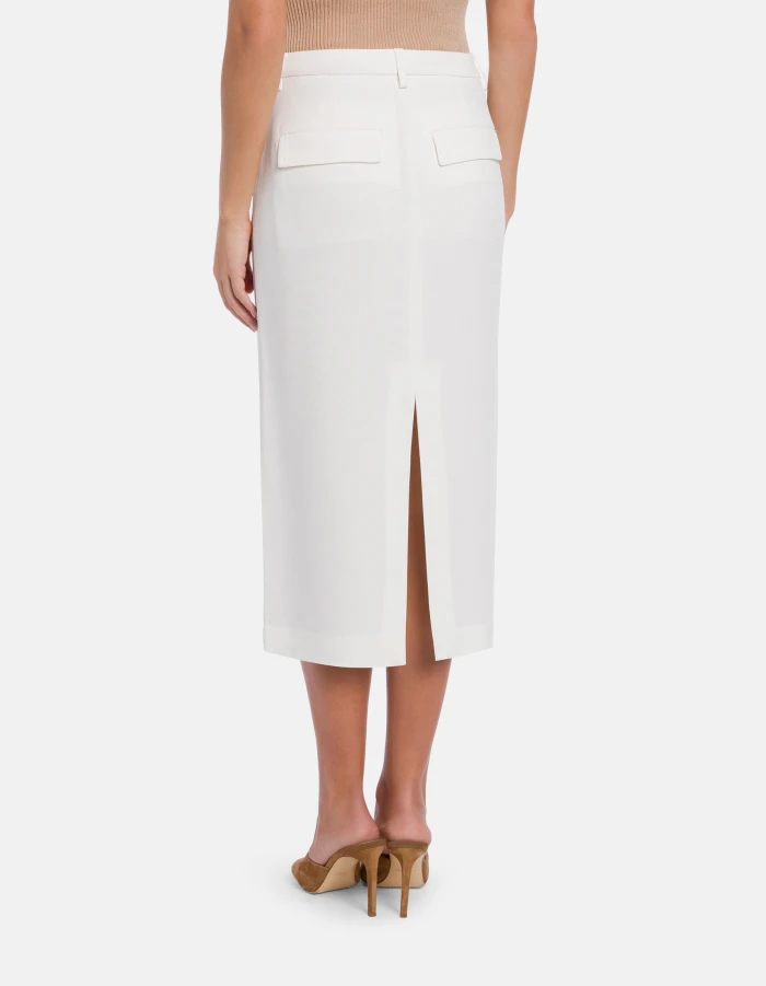 Midi skirt with front and back slits and back pockets with flaps. Stretch crepe. Dondup logo. Made in Italy