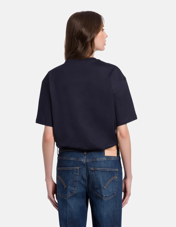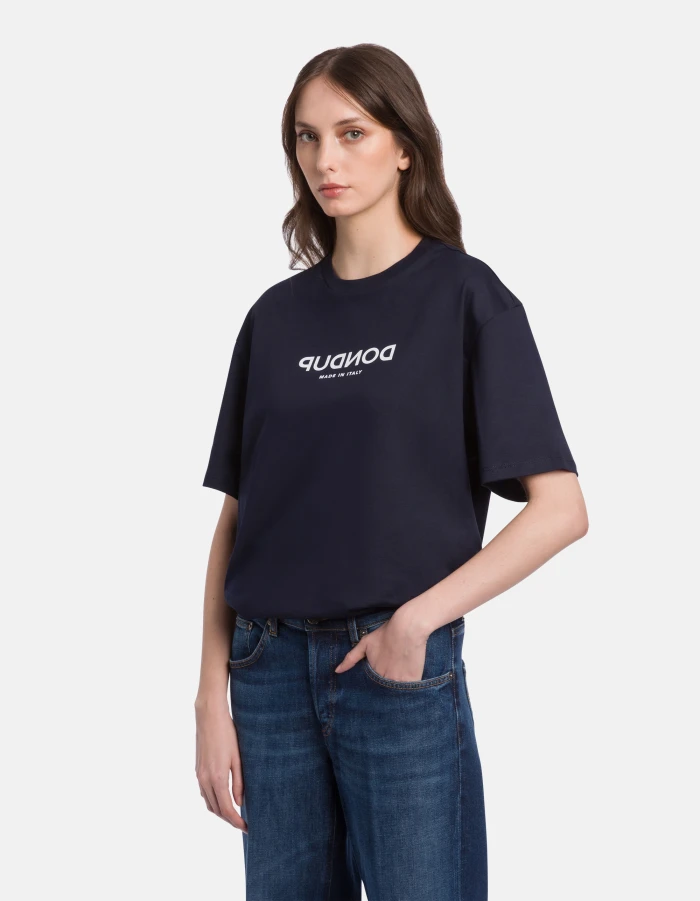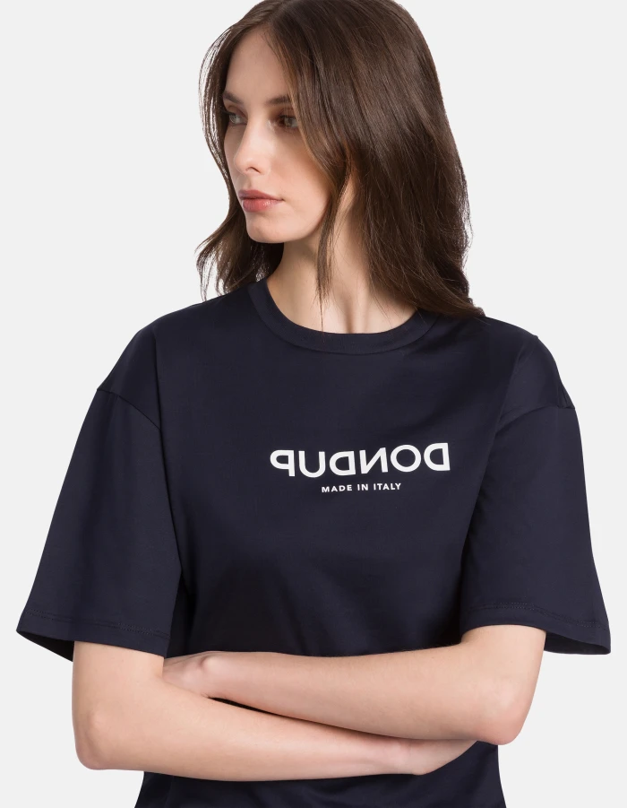 Regular-fit crew-neck T-shirt with short sleeves and central logo print. Basic cotton jersey. Dondup logo. Made in Italy