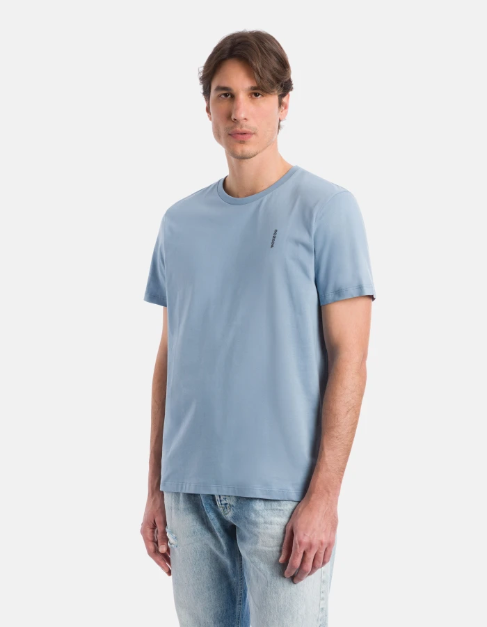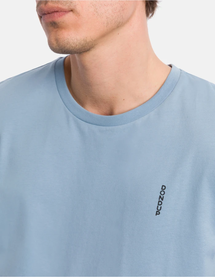 Regular-fit crew-neck T-shirt with short sleeves and vertical logo print on the left chest. Cotton jersey. Dondup logo. Made in Italy