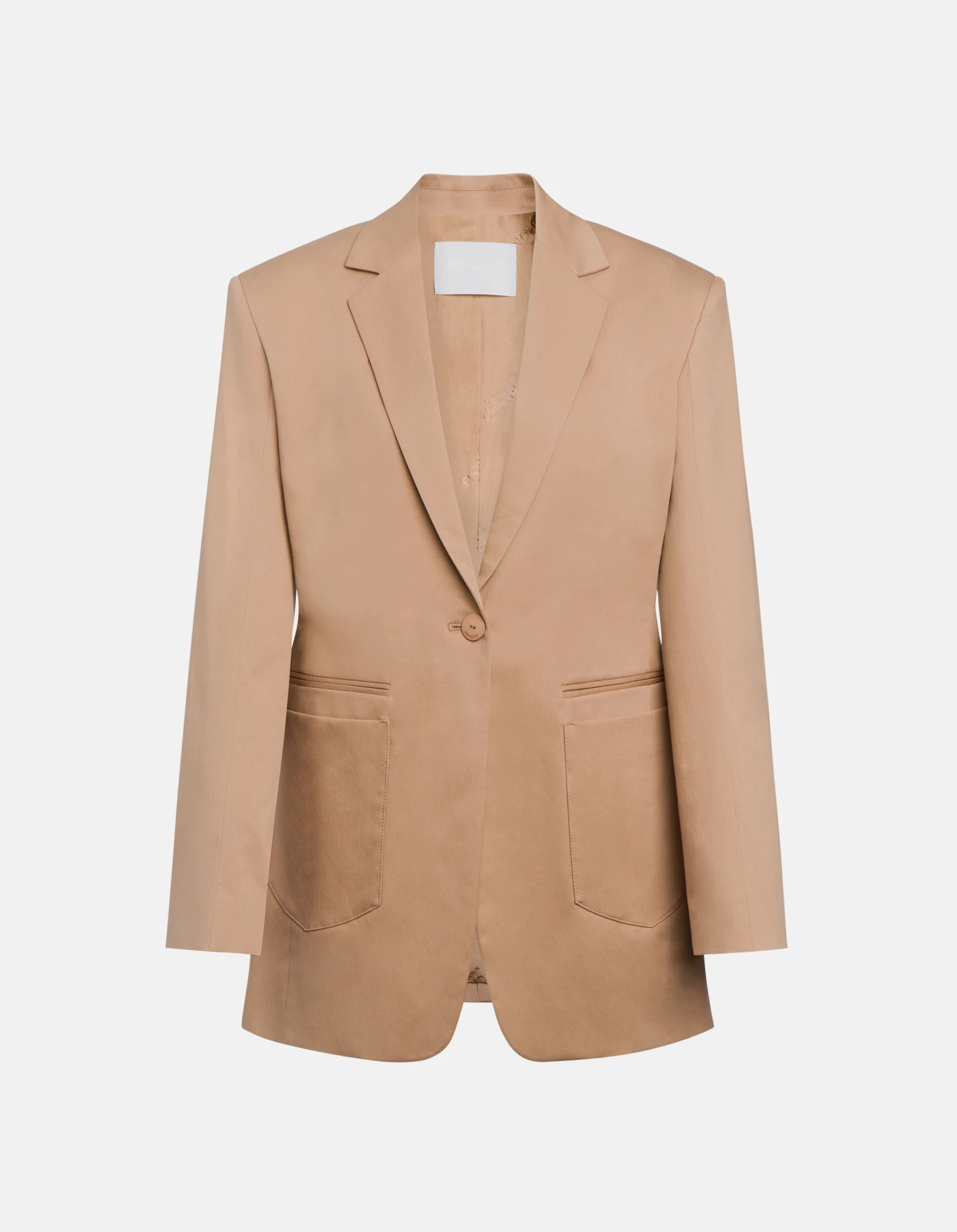 Regular-fit single-breasted blazer with one button, double-welt pockets and patch pocket. Stretch gabardine. Dondup logo. Made in Italy