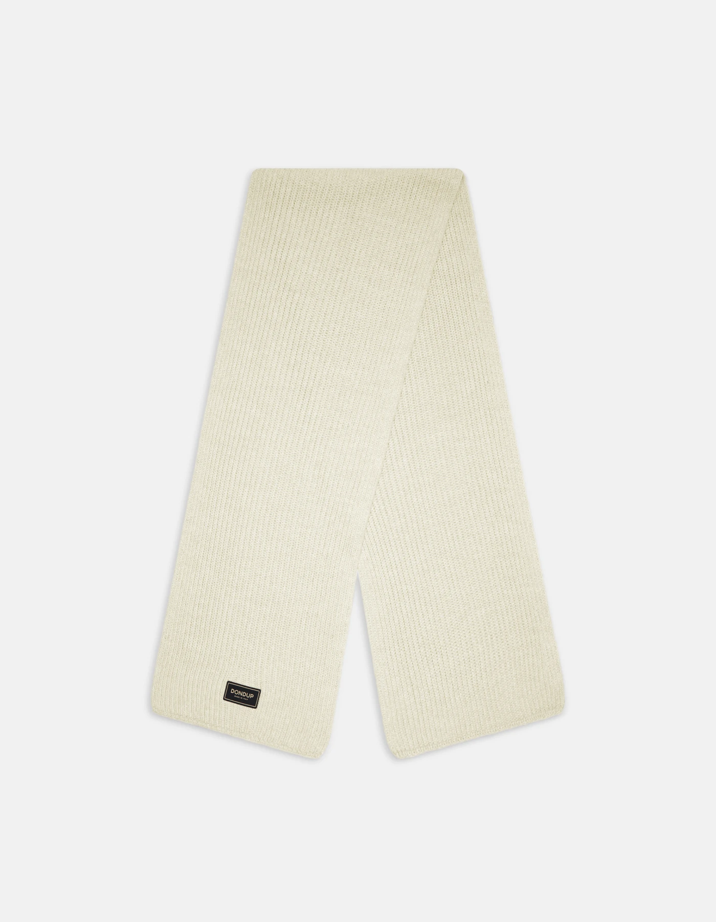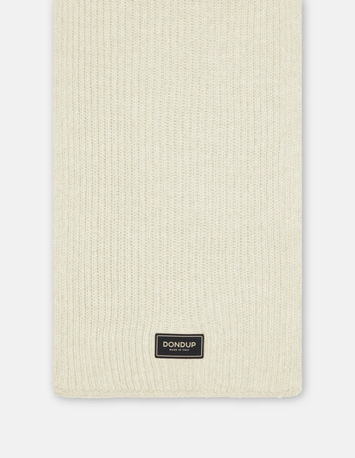 30 x 190 solid colour ribbed scarf logo label applique at the end. Technical wool. Dondup logo. Made in Italy