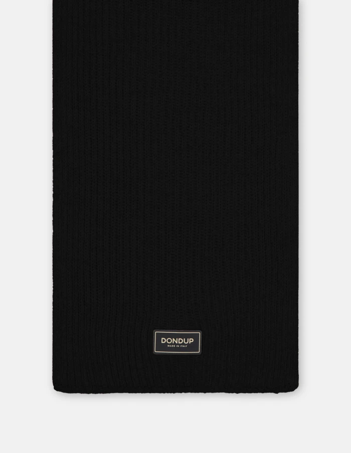 30 x 190 solid colour ribbed scarf logo label applique at the end. Technical wool. Dondup logo. Made in Italy