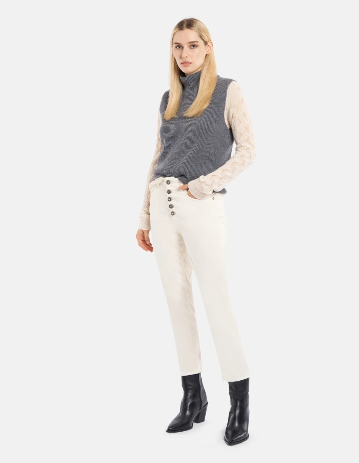 Slim-fit crew-neck jumper in openwork wool