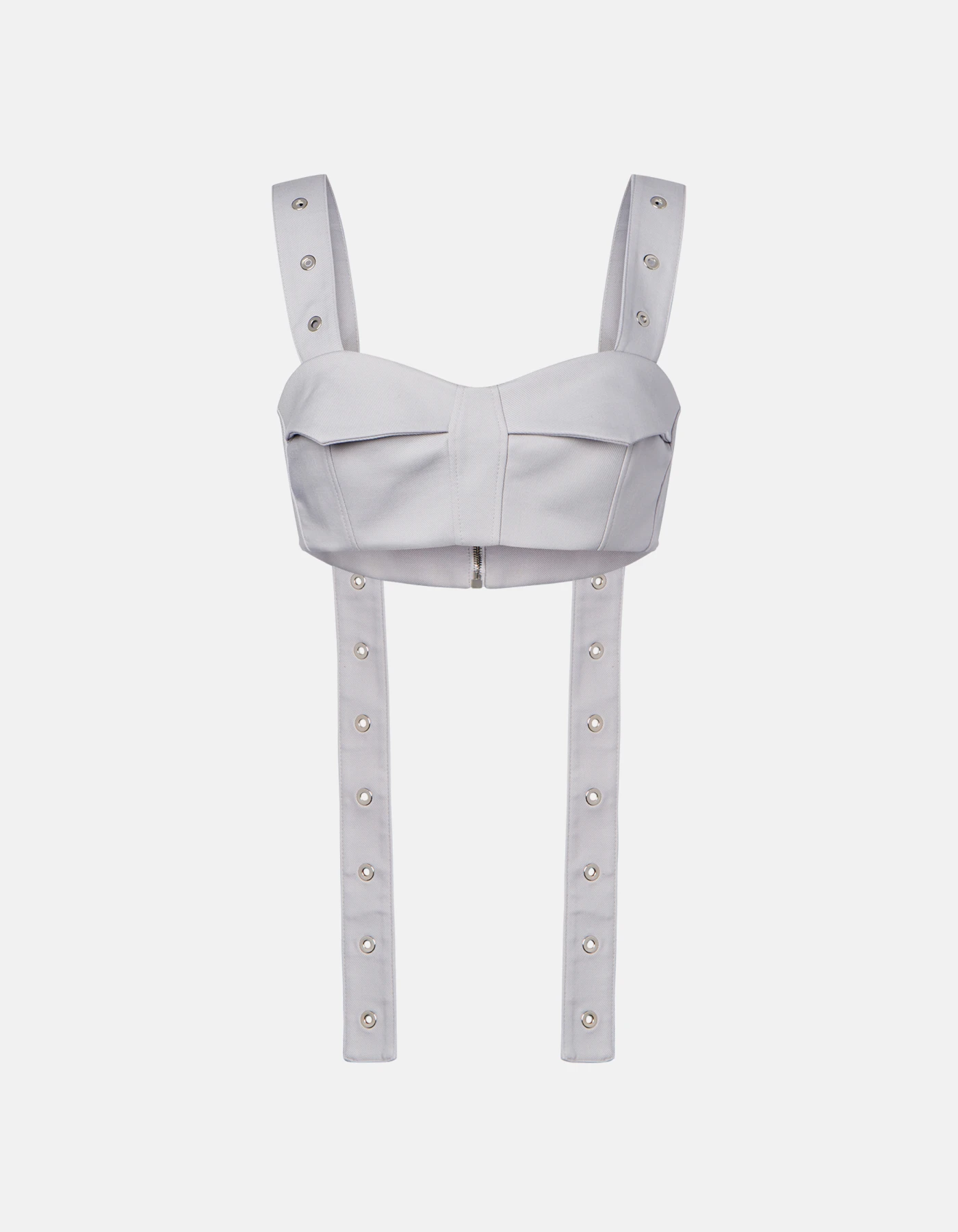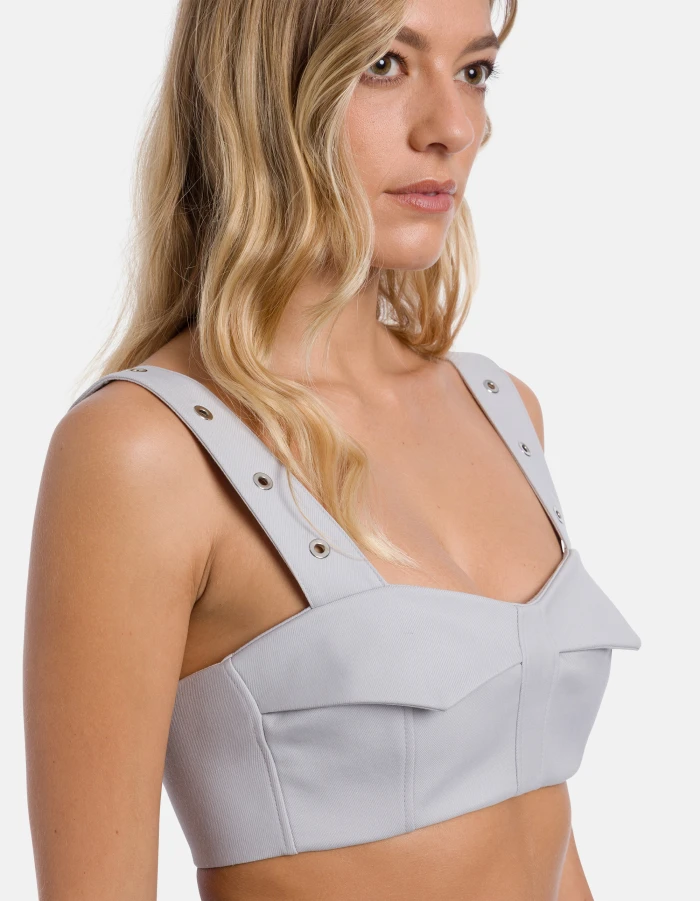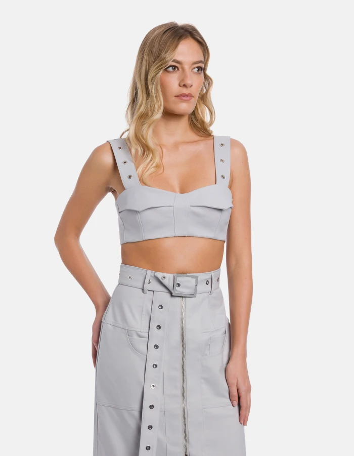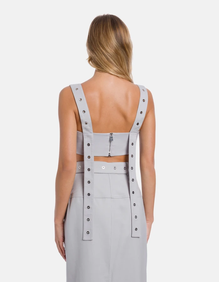 Slim-fit top with straps embellished with eyelets, visible metal zip fastening at the back. Stretch wool-blend caddy. Dondup logo. Made in Italy