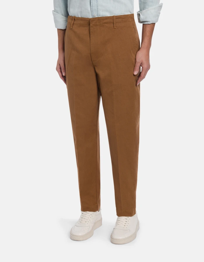 Zyan carrot-cut trousers in plain-weave cotton and linen