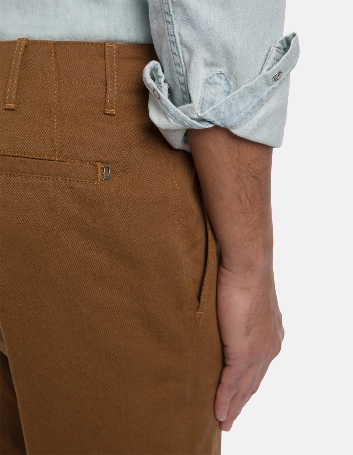 Zyan carrot-cut chinos, regular waist, welt pockets at the back. Plain-weave cotton and linen. Dondup logo. Made in Italy