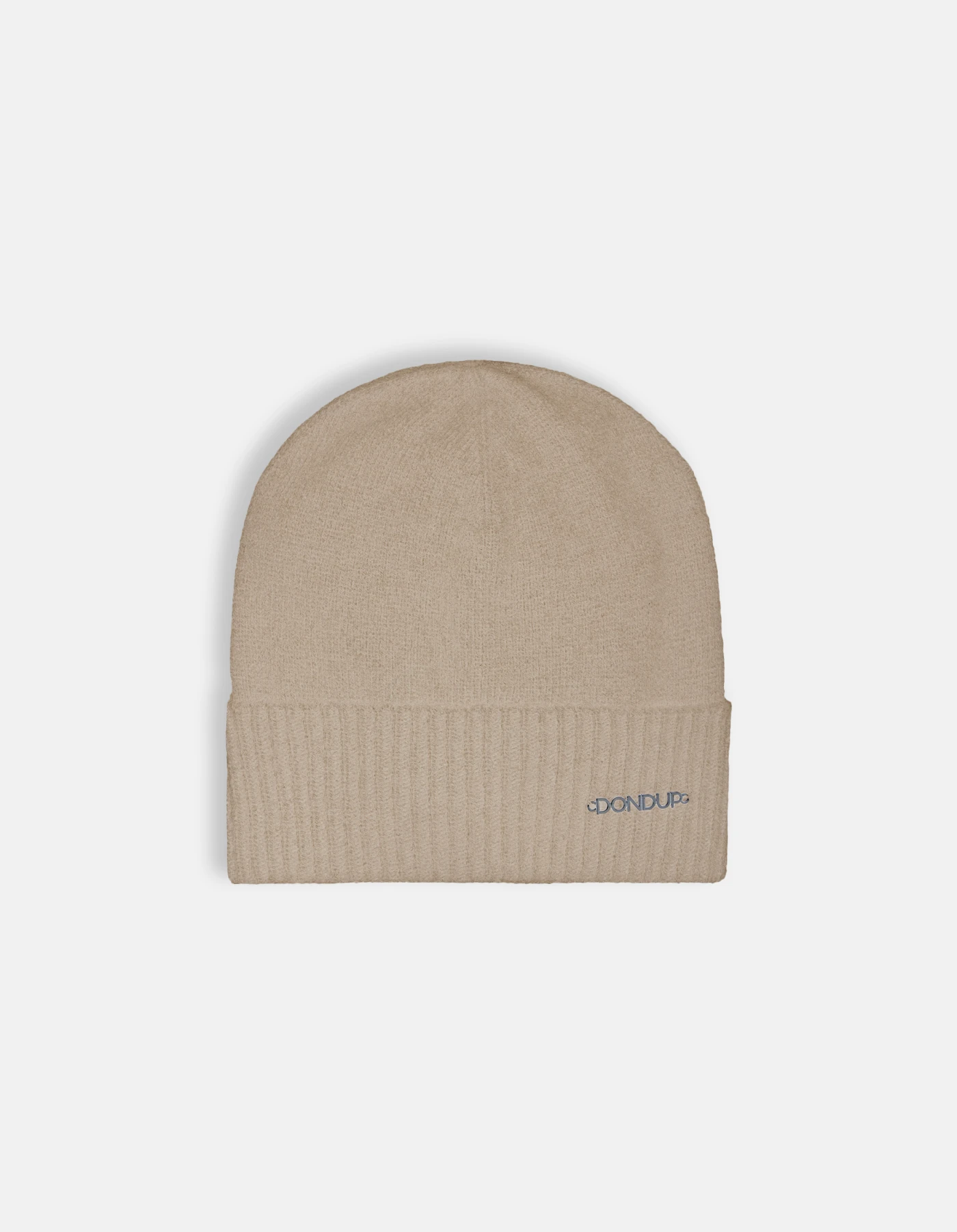 Cashmere hat with metal logo applique on the front. Cashmere. Dondup logo. Made in Italy