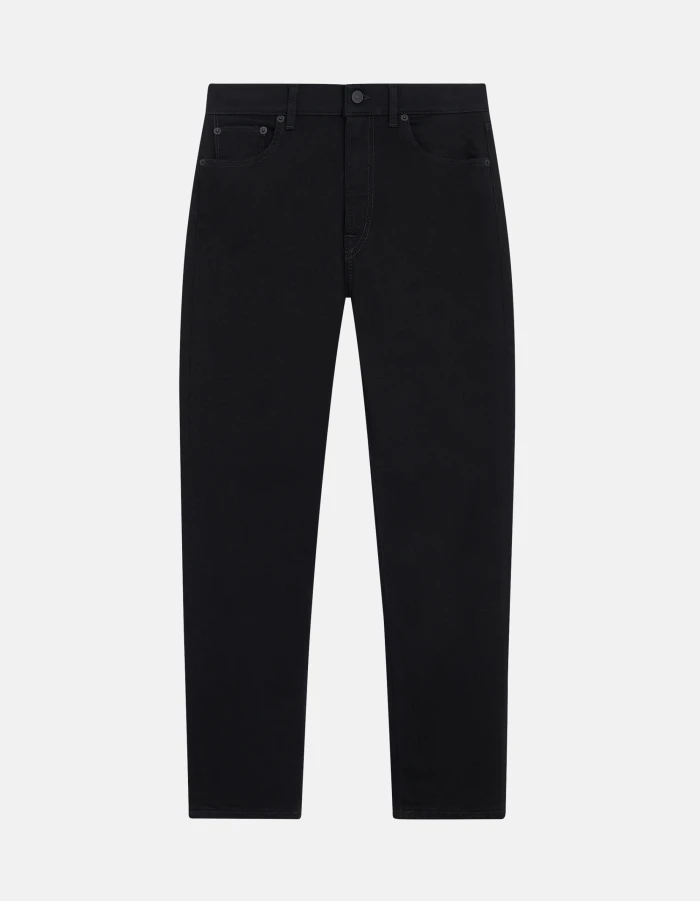 Daila slim-fit five-pocket jeans, regular waist, straight leg. Black black 10 oz recycled stretch denim. GRS clean black wash. Dondup logo. Made in Italy