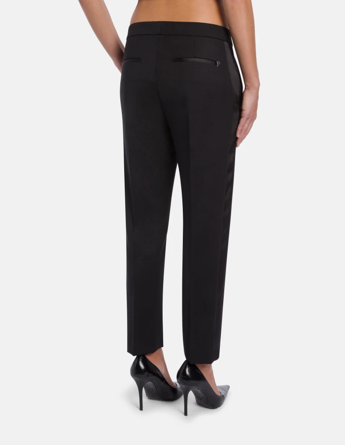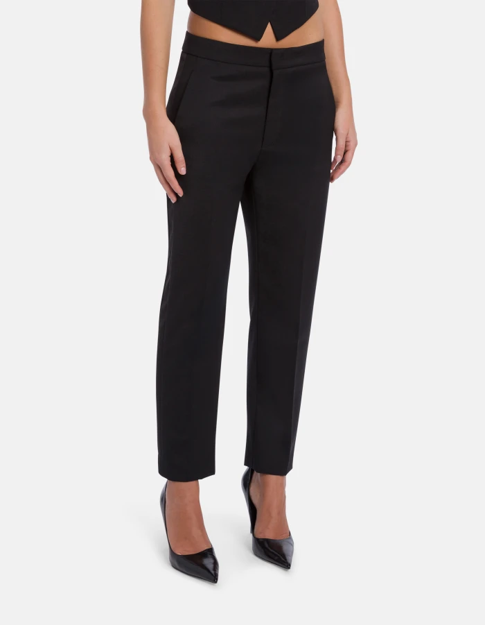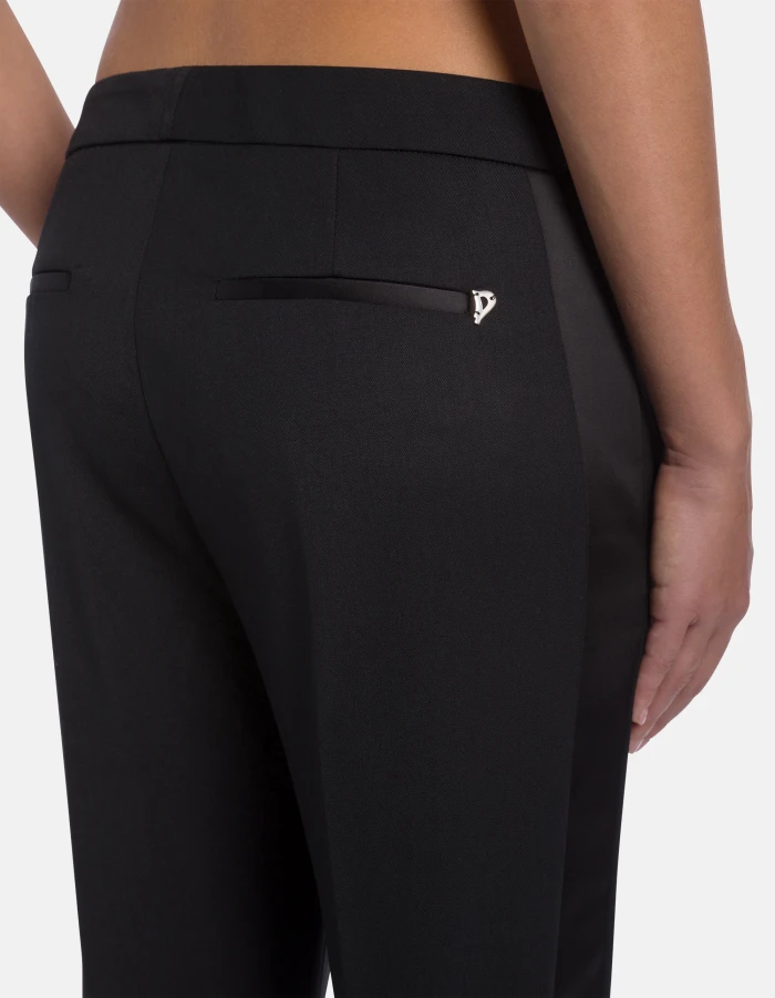 Ella loose-fit cropped chinos, low waist, welt pockets at the back. Wool-blend gabardine. Dondup logo. Made in Italy