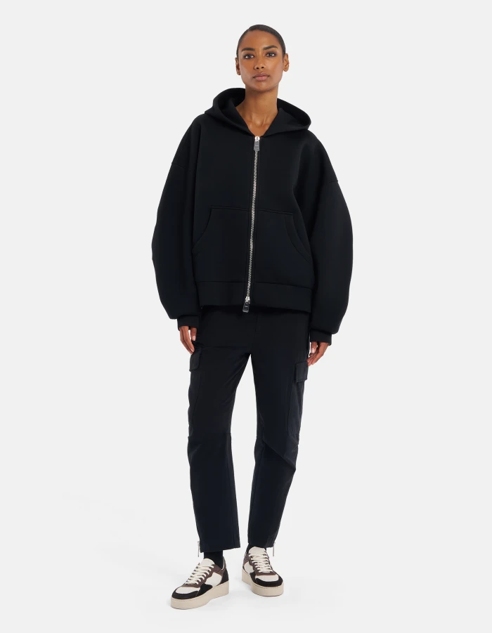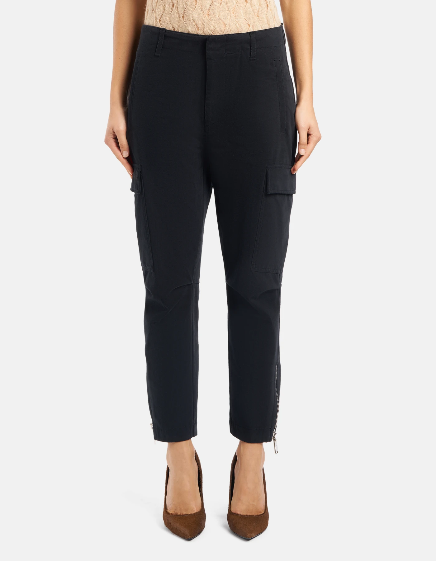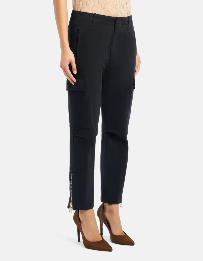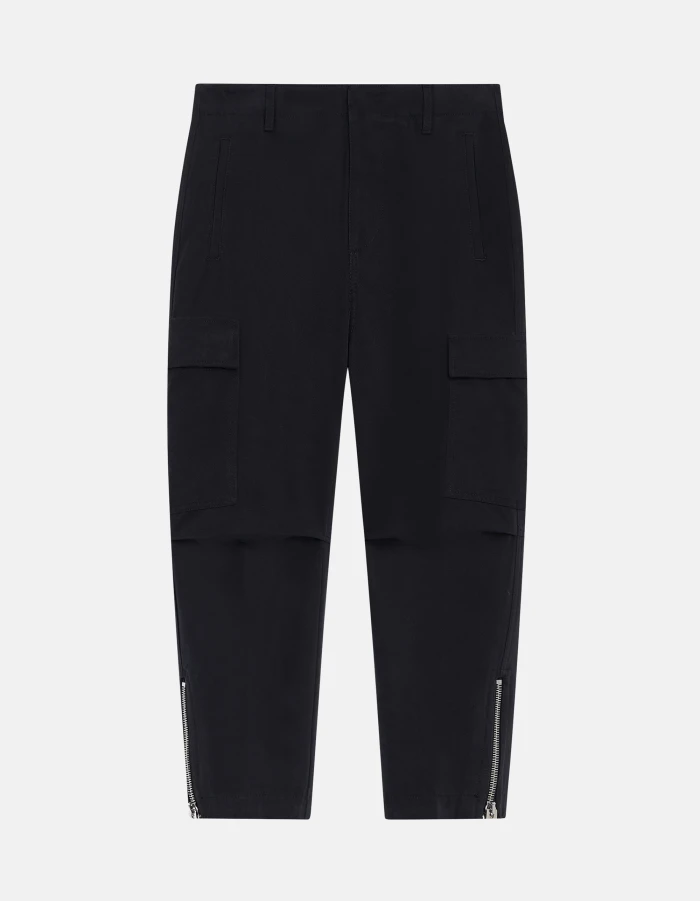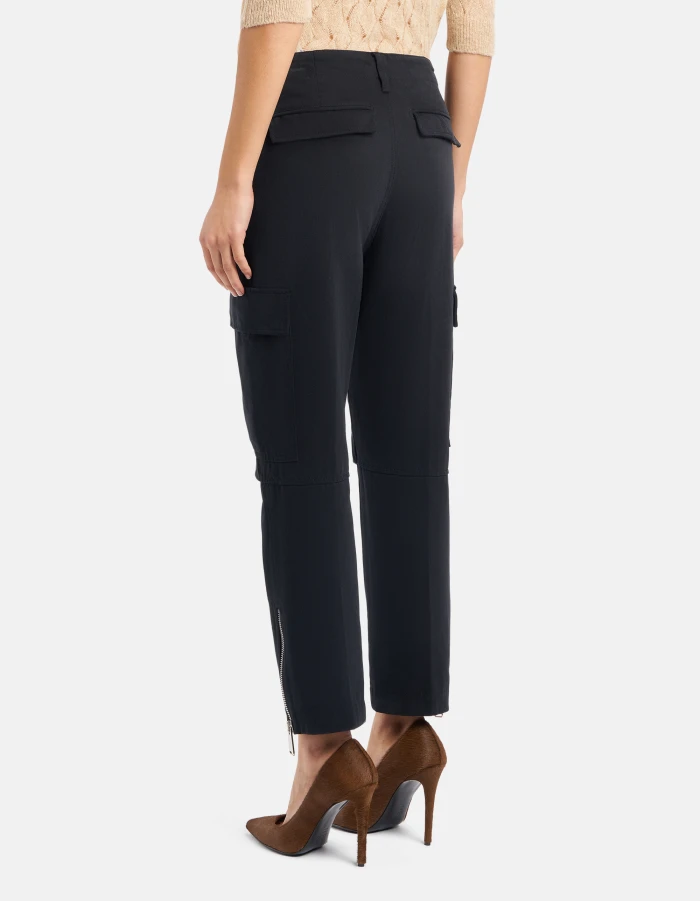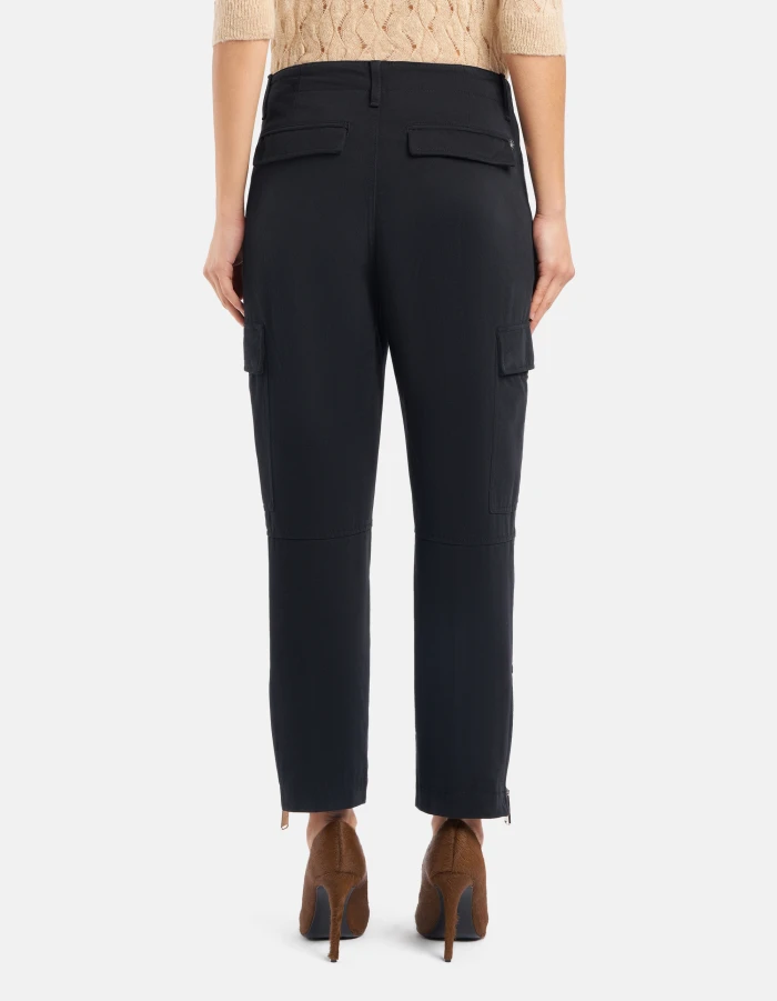 Eve cargo trousers, regular waist, flap pockets at the back, ankle opening with visible zip. Velour gabardine. Dondup logo. Made in Italy