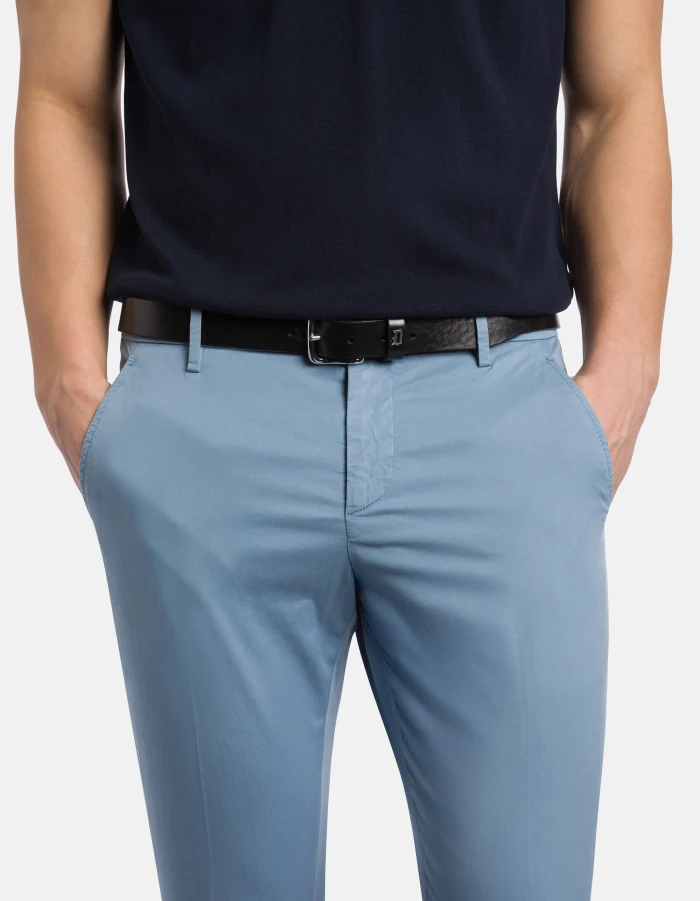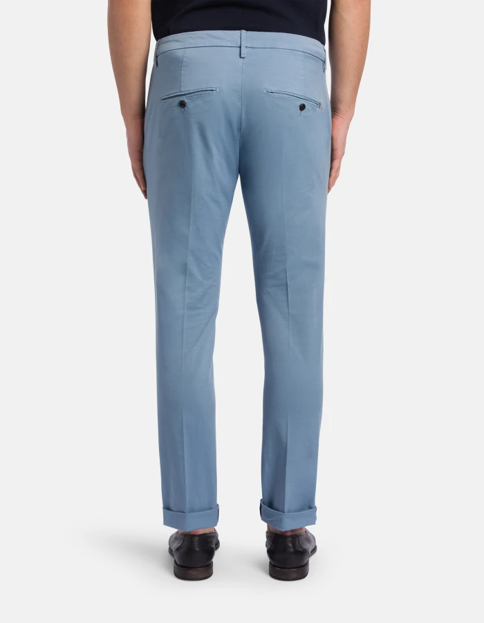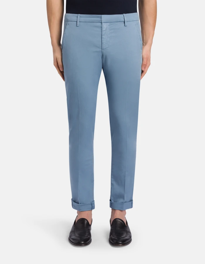 Gaubert slim-fit chinos, low waist, welt pockets at the back. Lightweight gabardine. Garment dyed. Dondup logo. Made in Italy