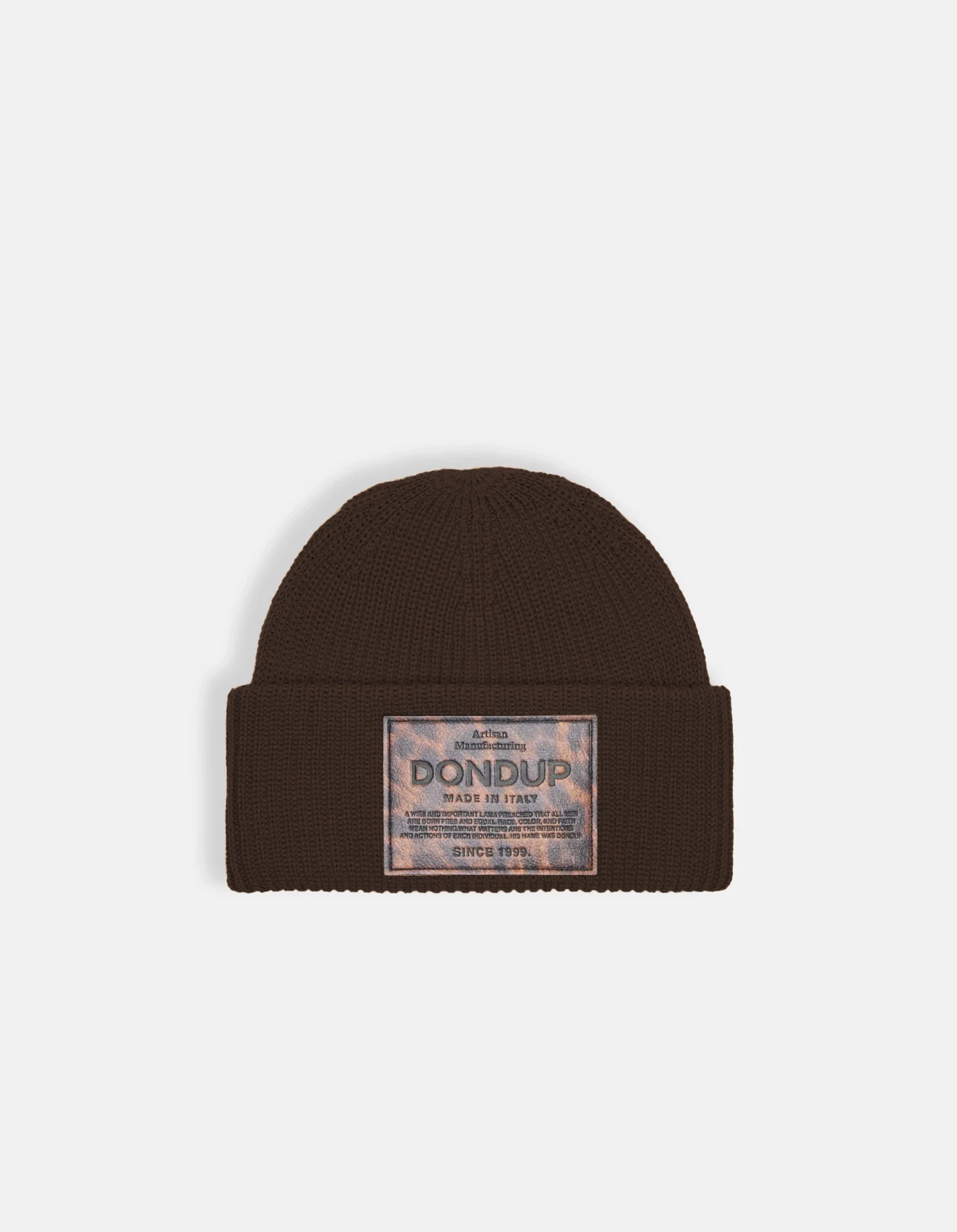 Technical wool hat in Fisherman’s rib with mottled logo label. Technical wool. Dondup logo. Made in Italy
