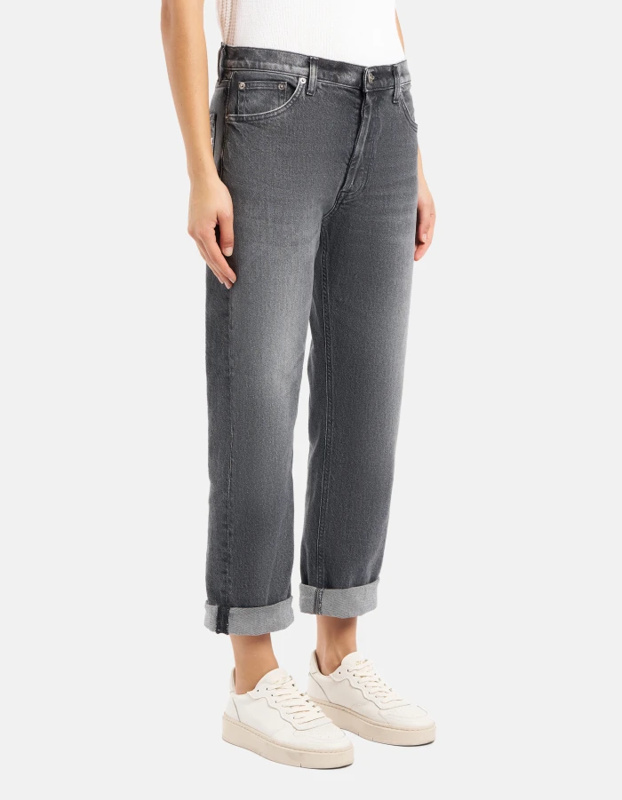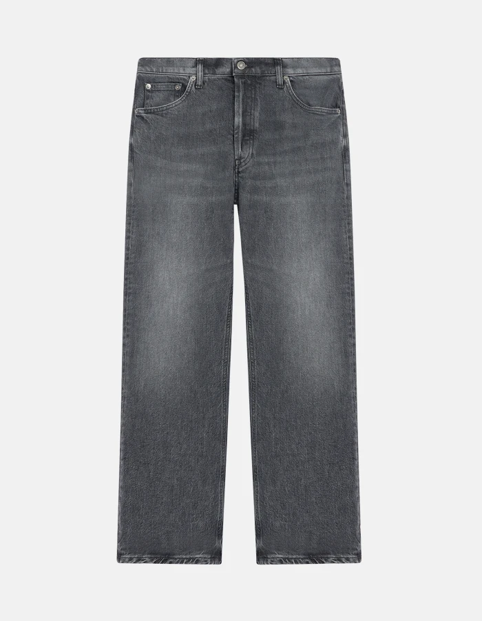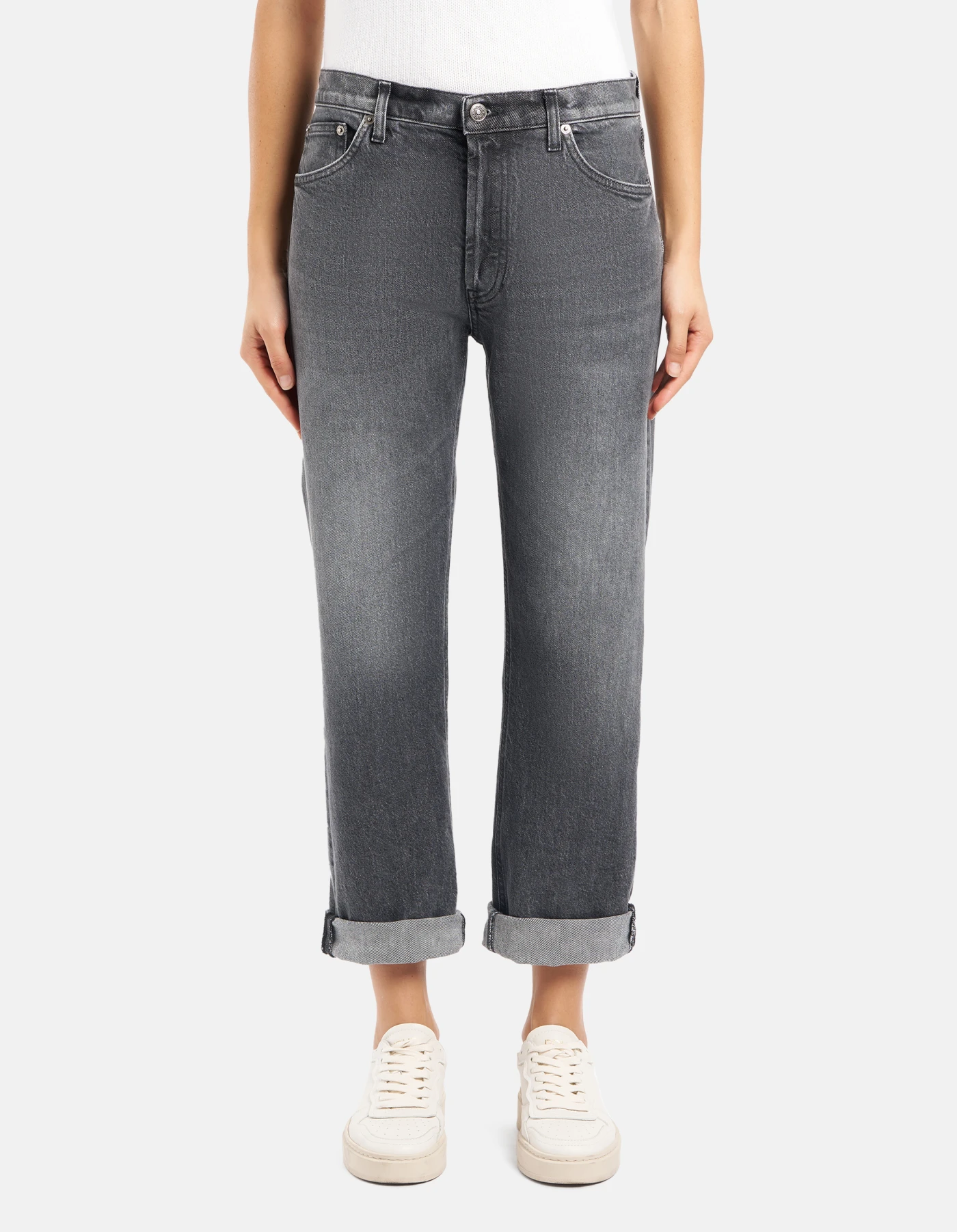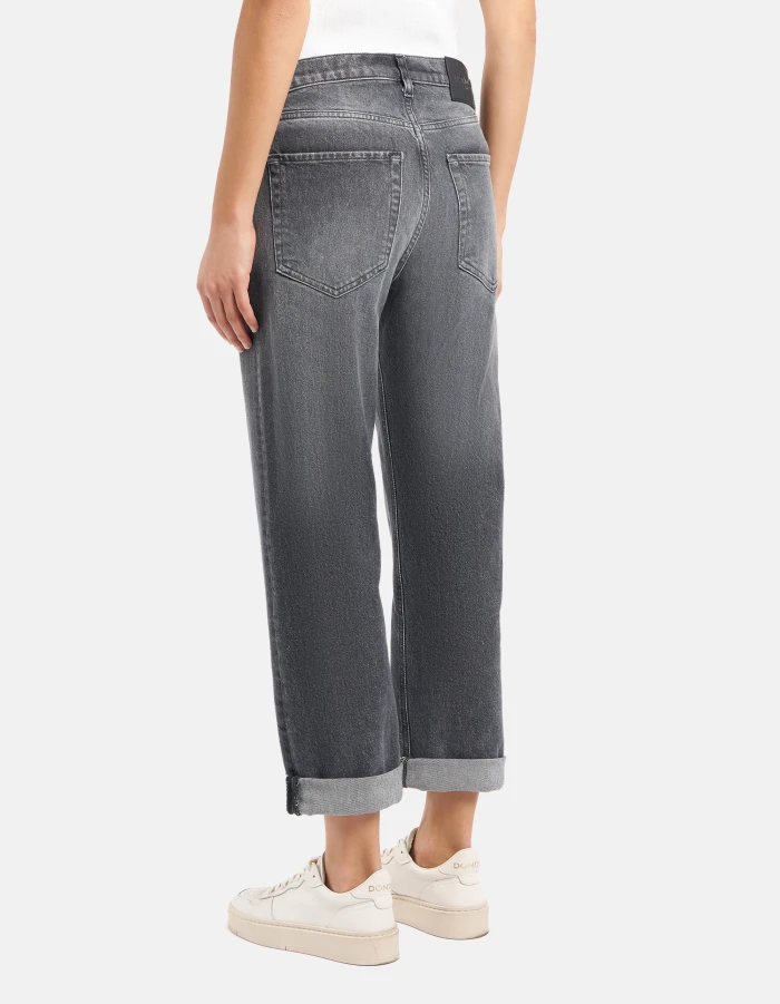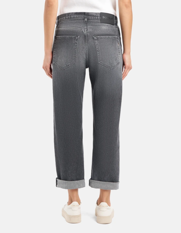 Icon regular-fit five-pocket jeans, regular waist. Black 14 oz comfort stretch denim. Vintage clean black wash. Dondup logo. Made in Italy