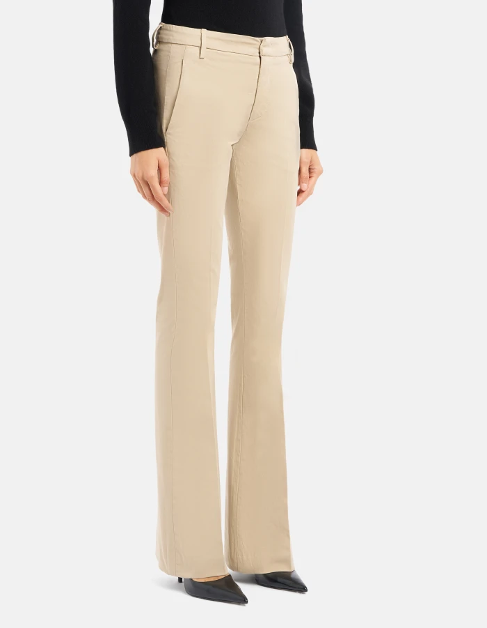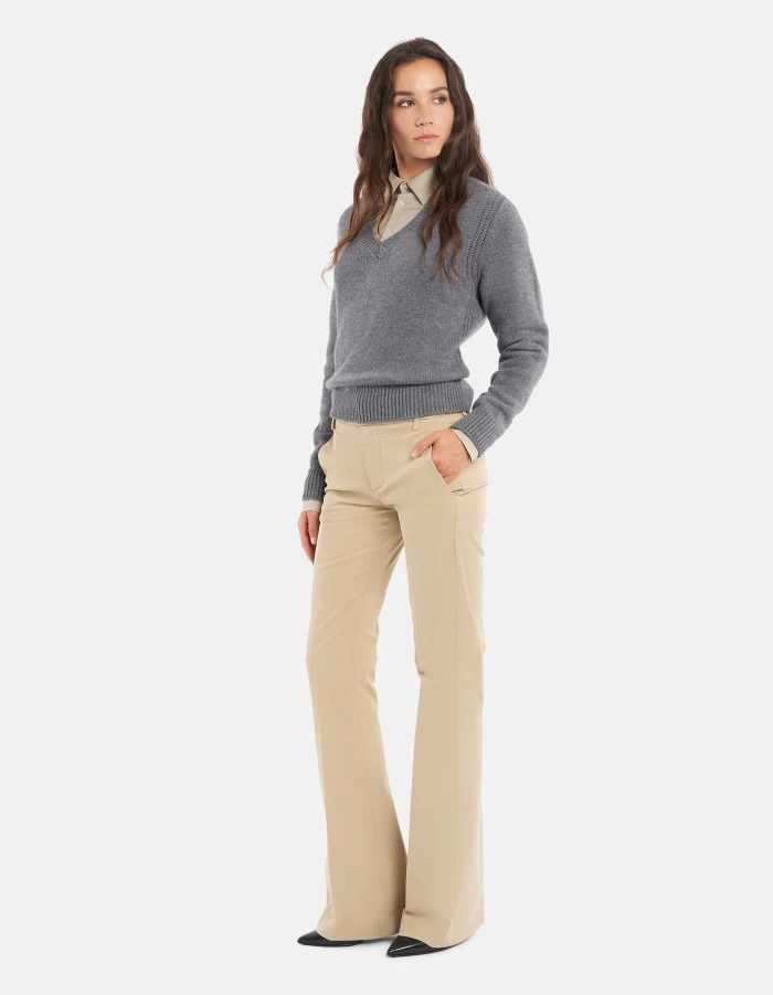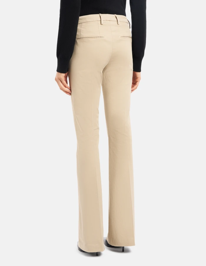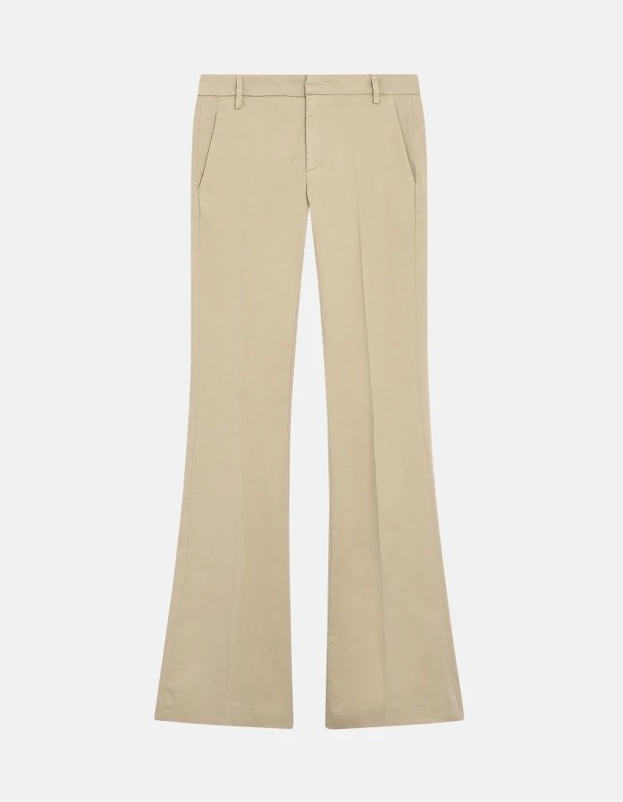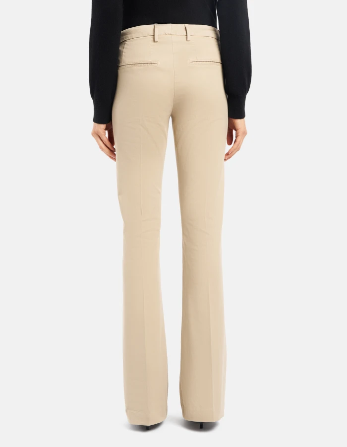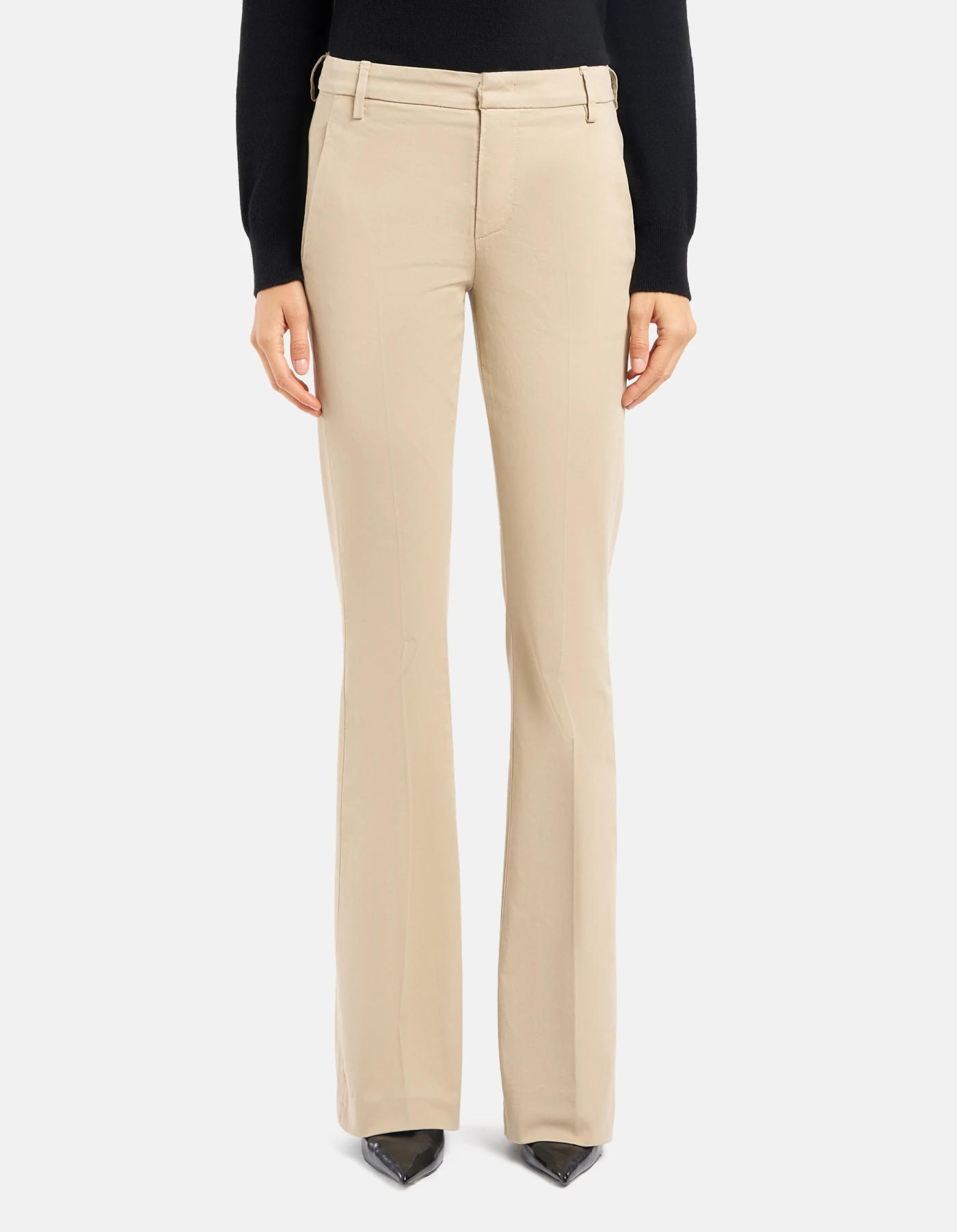 Lexi skinny bootcut chino trousers, high waist, welt pockets at the back. Stretch gabardine. Garment dyed. Dondup logo. Made in Italy