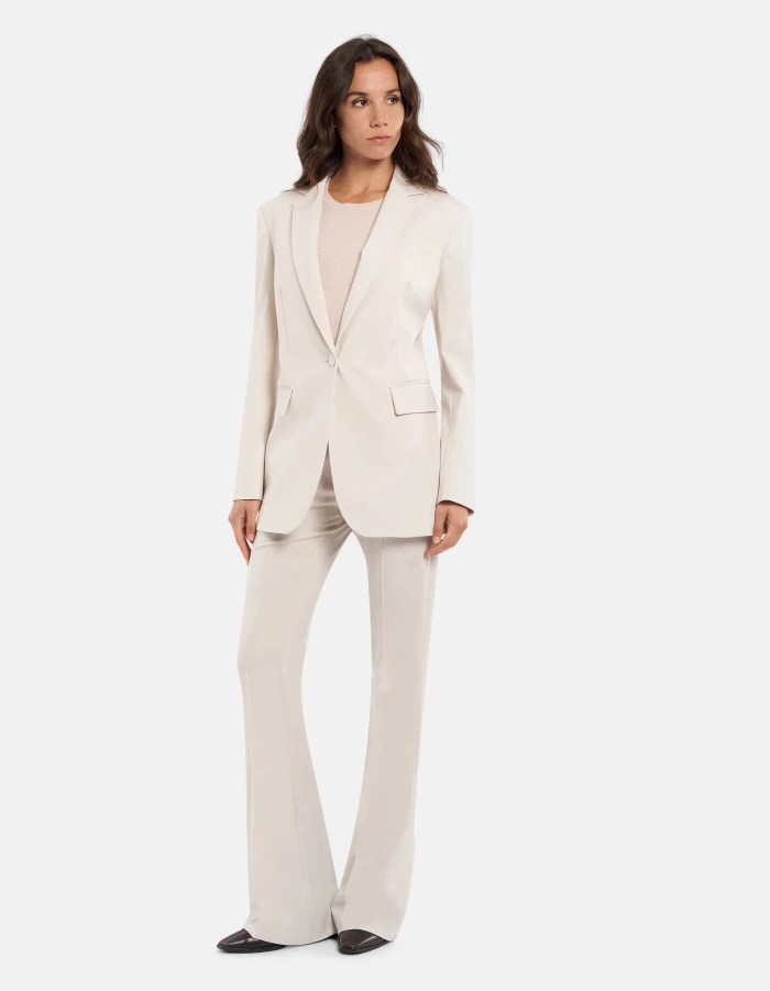 Lexi skinny bootcut chino trousers, high waist, welt pockets at the back. Stretch wool gabardine. Dondup logo. Made in Italy