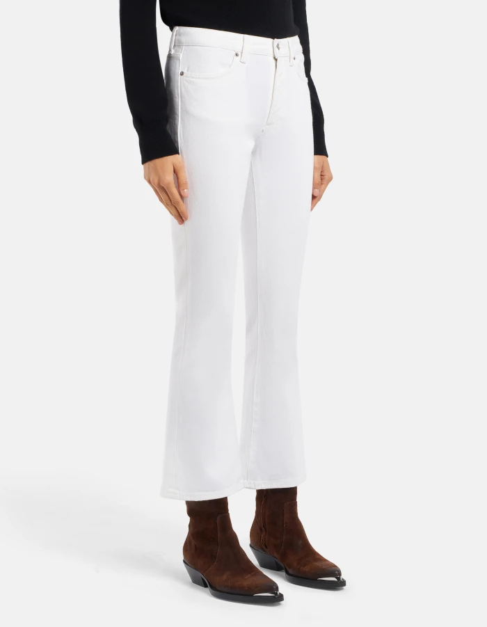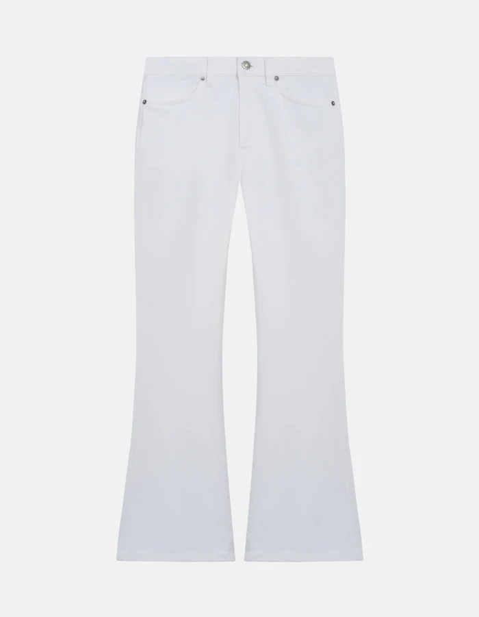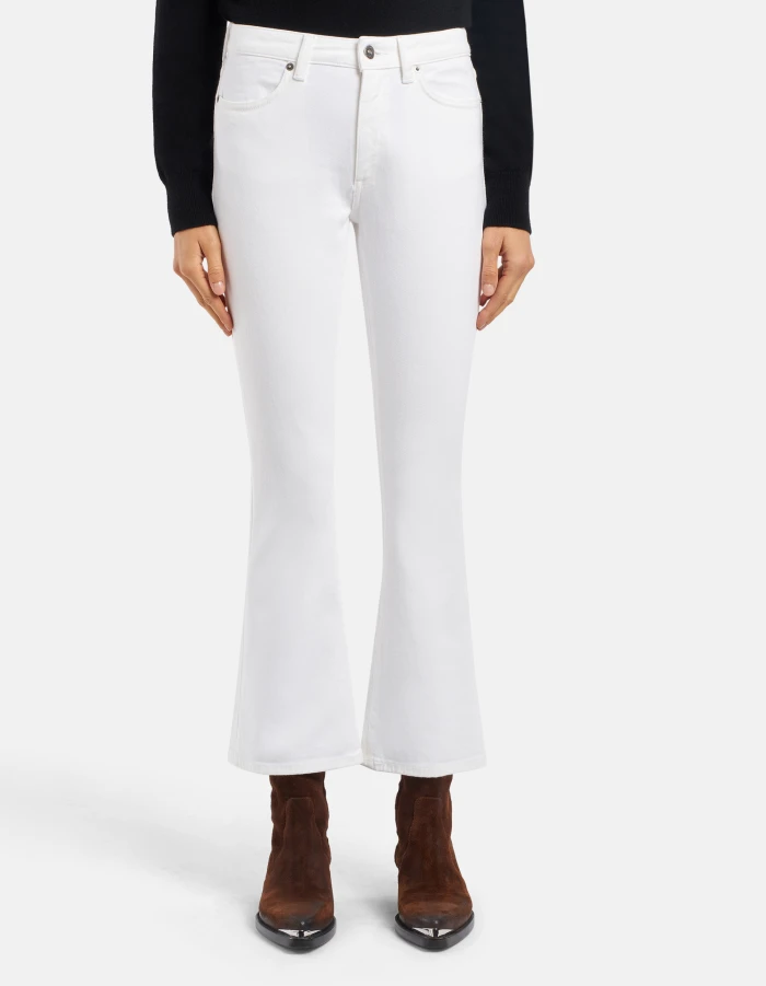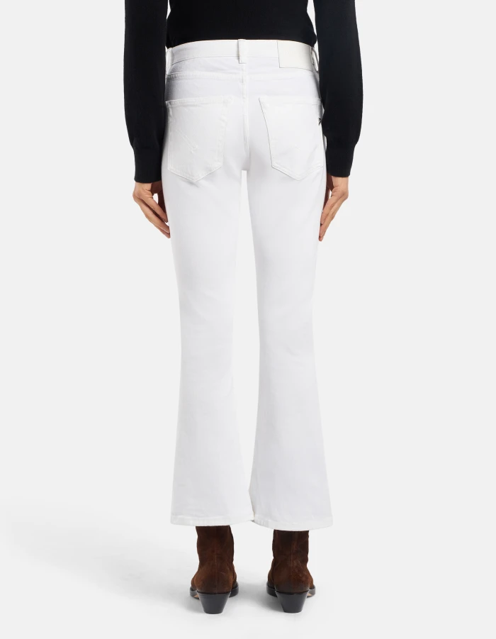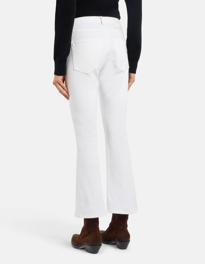 Mandy super skinny five-pocket bootcut jeans, high waist, length above the ankle. 11 1/2 oz bluesign APPROVED stretch bull denim. Bluesign garment dyed. Dondup logo. Made in Italy