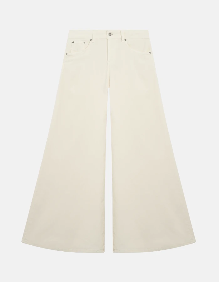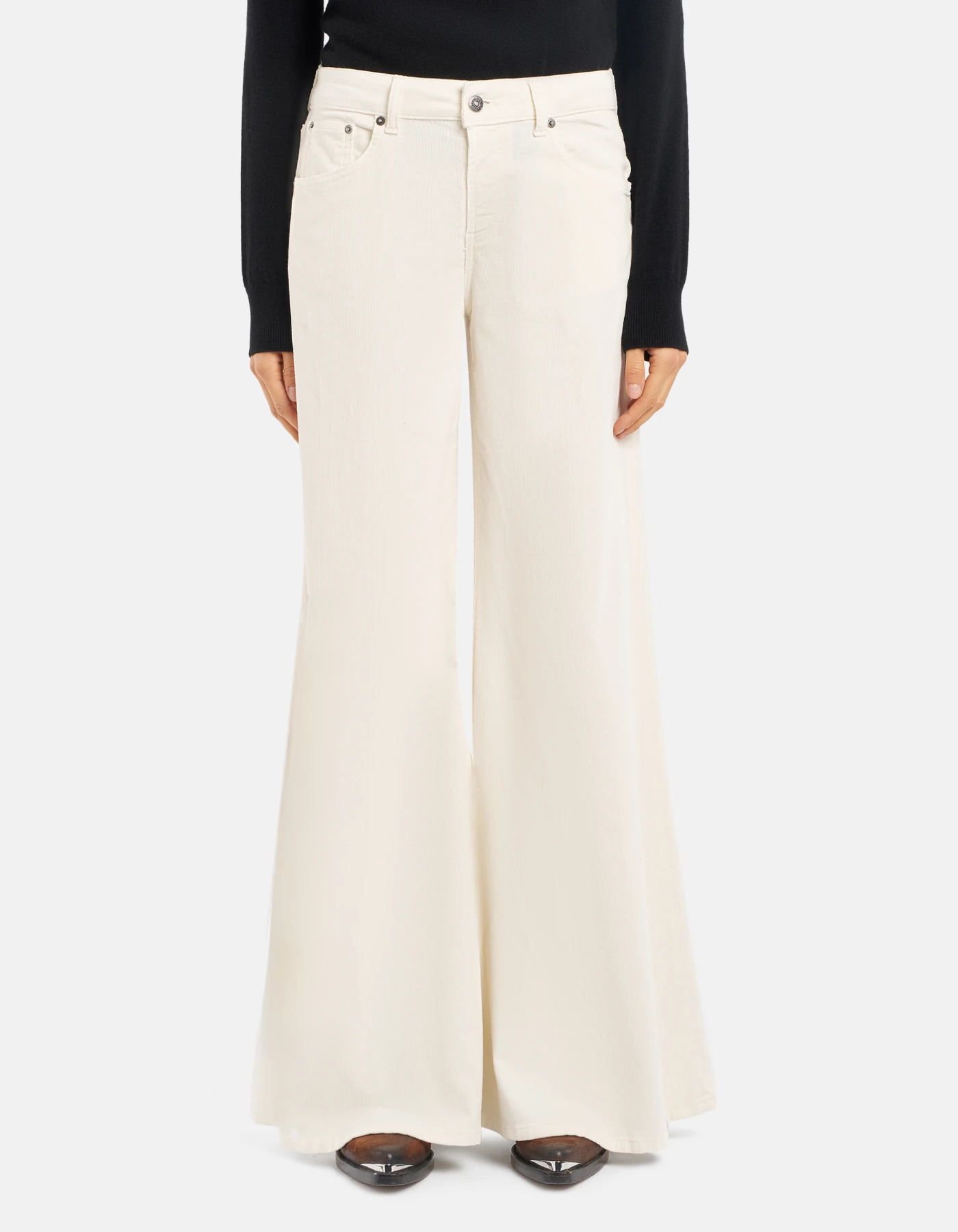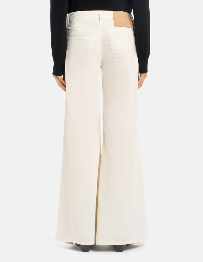 Marlen very wide leg five-pocket jeans, regular waist. Stretch cotton and lyocell velvet. Garment dyed. Dondup logo. Made in Italy