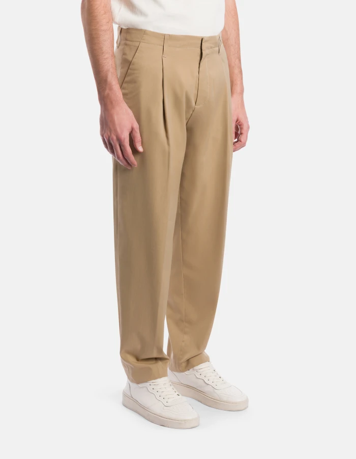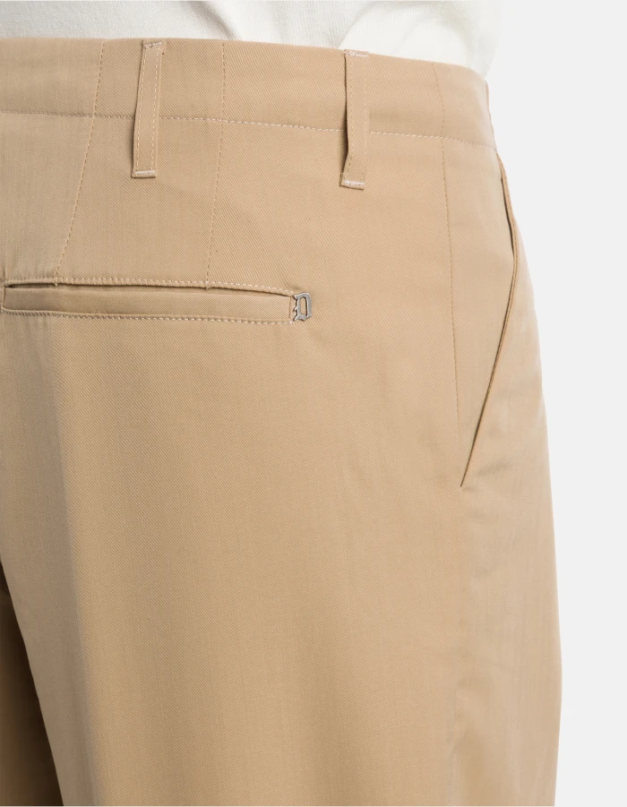 Miles loose-fit chinos, low waist, darts at the front and welt pockets at the back. Stretch polyester wool gabardine. Dondup logo. Made in Italy