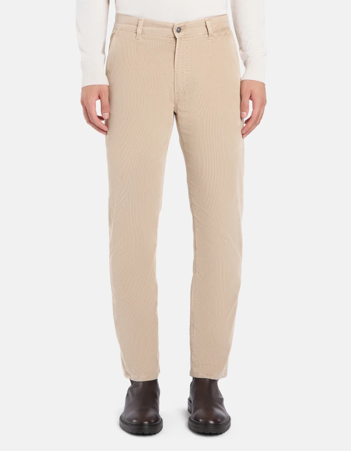 Oliver loose-fit five-pocket trousers, regular waist, slanted pockets. 1500-rib corduroy. Vintage garment dye. Dondup logo. Made in Italy