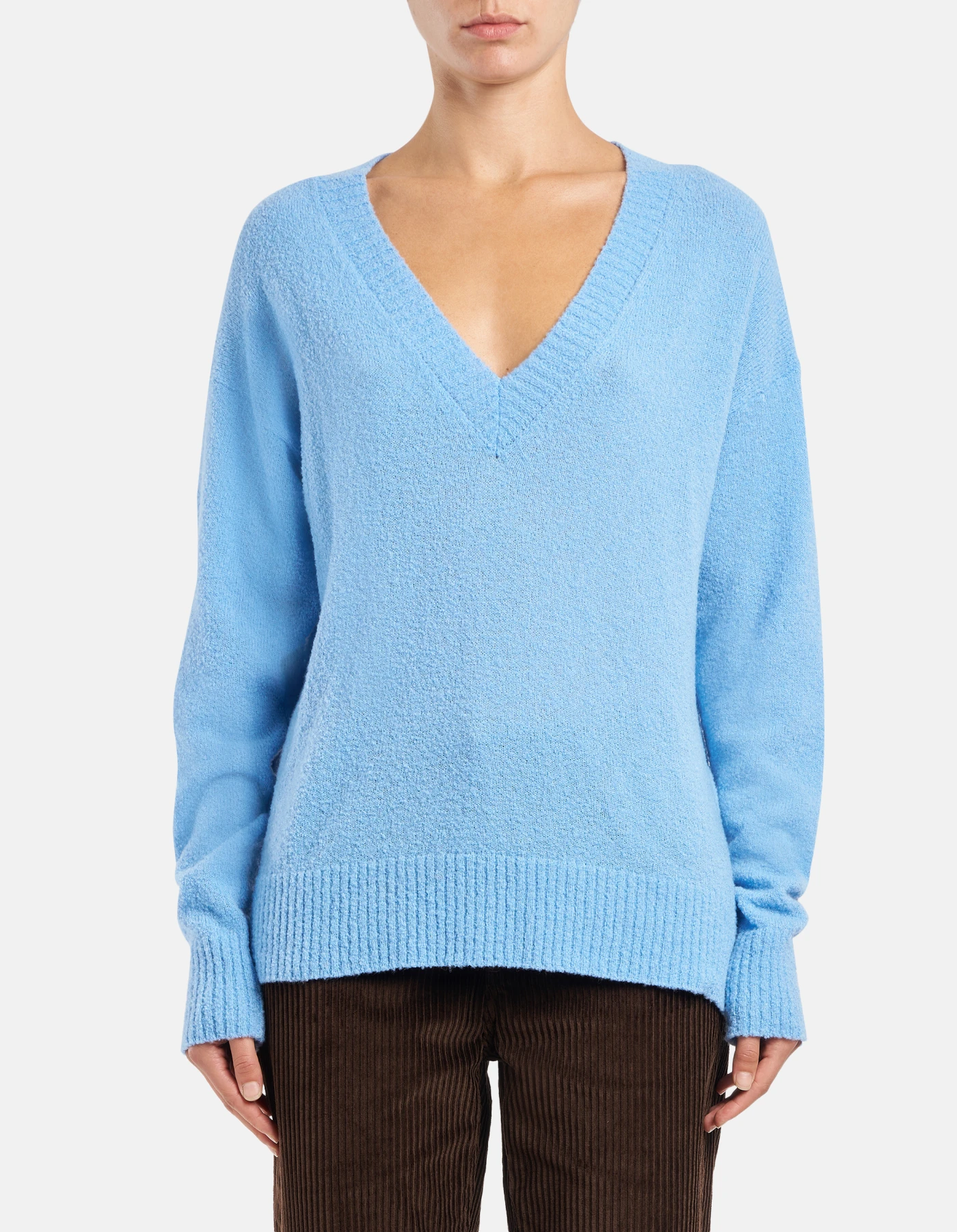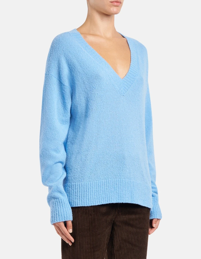 Oversized V-neck jumper in bouclé wool