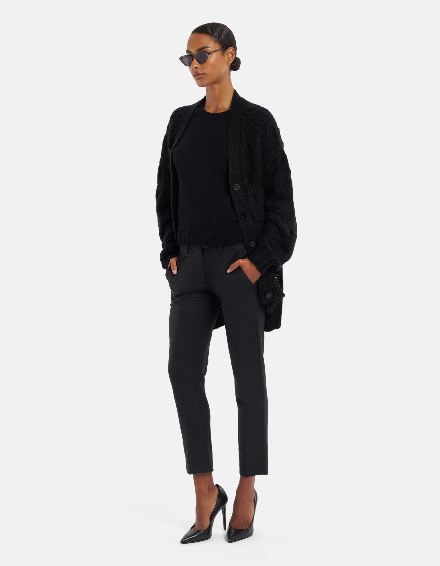 Perfect slim-fit cropped chino trousers, regular waist, welt pockets at the back. Stretch flannel. Dondup logo. Made in Italy