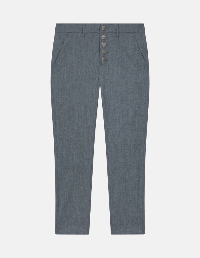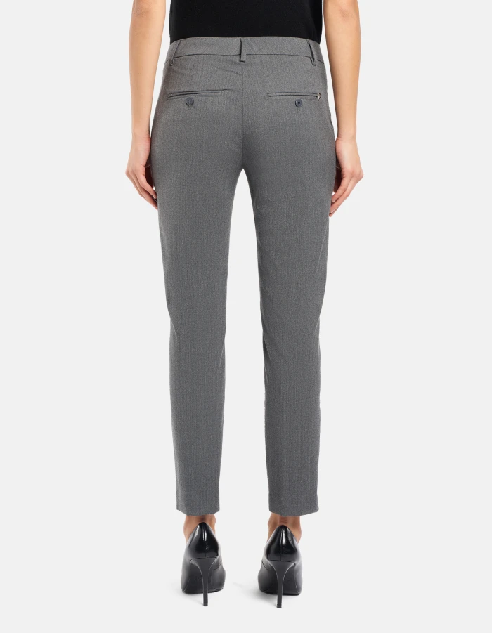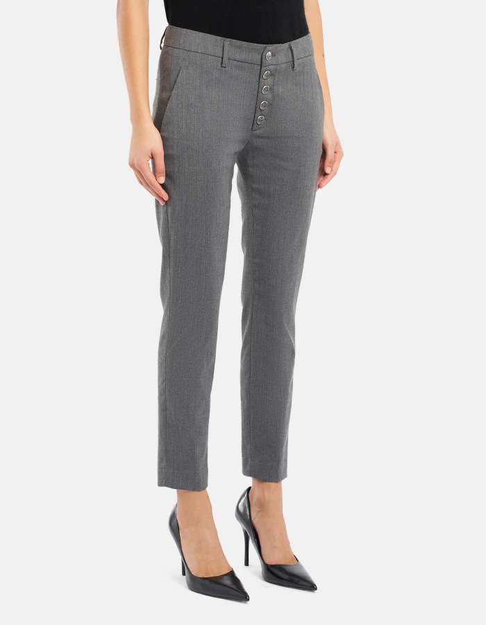Perfect slim-fit cropped chino trousers, regular waist, welt pockets at the back. Jewel button fastening. Wool-blend gabardine. Dondup logo. Made in Italy