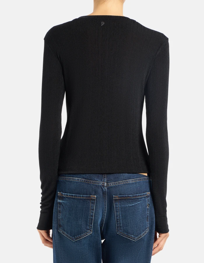 Regular-fit crew-neck cardigan with long sleeves. Ten-button opening. Bright rib. Dondup logo. Made in Italy