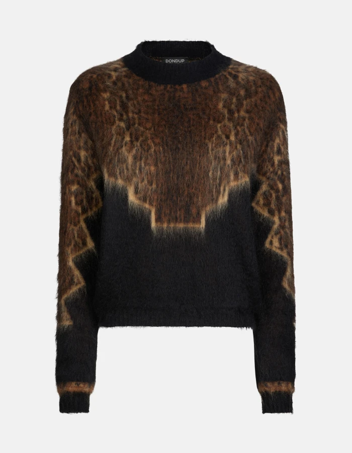 Oversized crew-neck jumper with long sleeves and logo applique on the back. Mottled. Dondup logo. Made in Italy