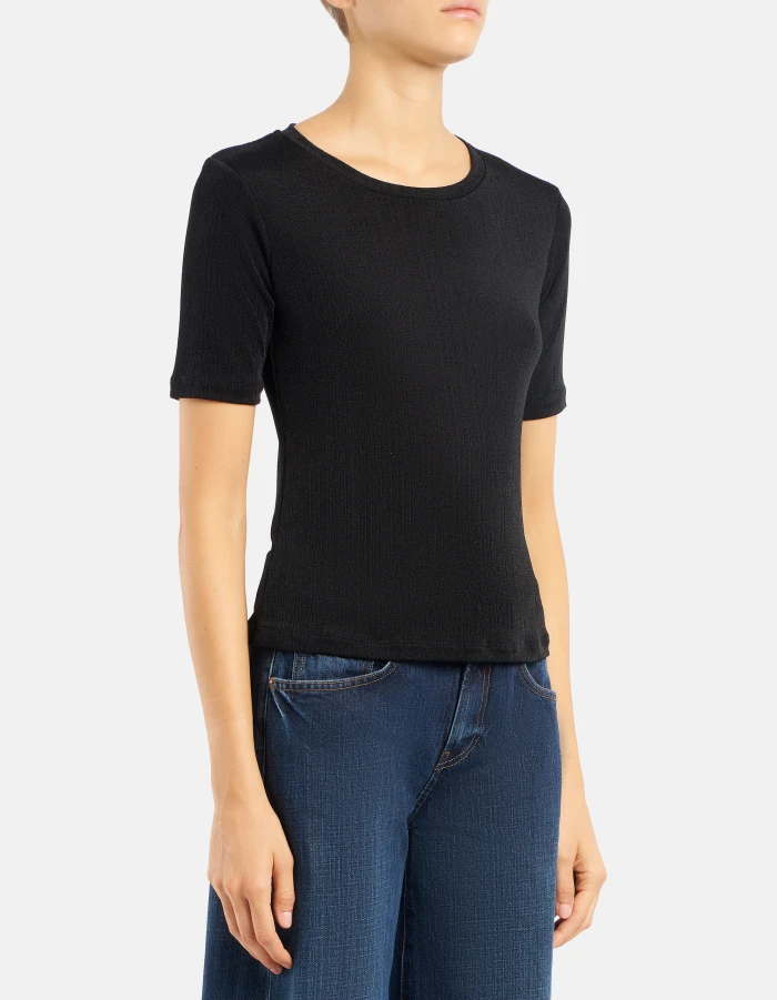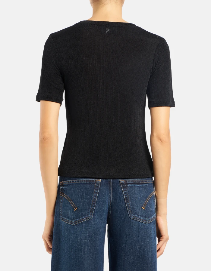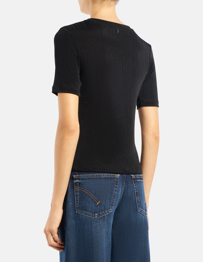 Regular-fit crew-neck T-shirt with short sleeves. Bright rib. Dondup logo. Made in Italy
