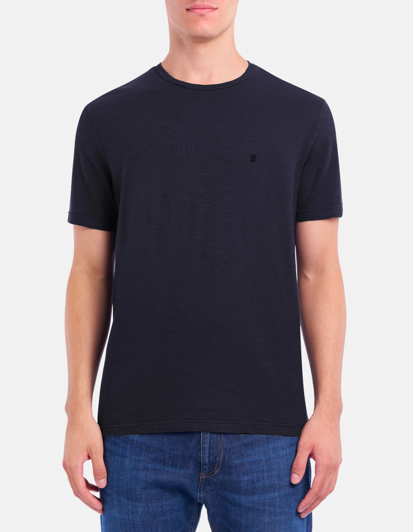 Regular-fit crew-neck T-shirt with short sleeves and D logo appliqué at the front. Cotton jersey. Dondup logo. Made in Italy