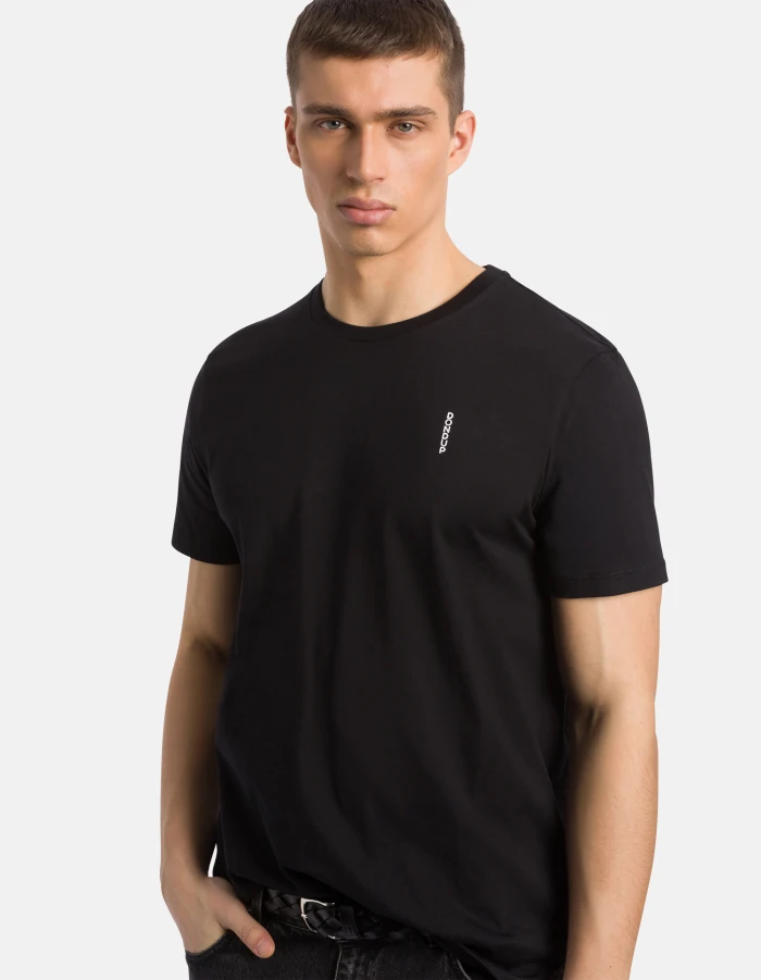 Regular-fit crew-neck T-shirt with short sleeves and vertical logo print on the left chest. Cotton jersey. Dondup logo. Made in Italy