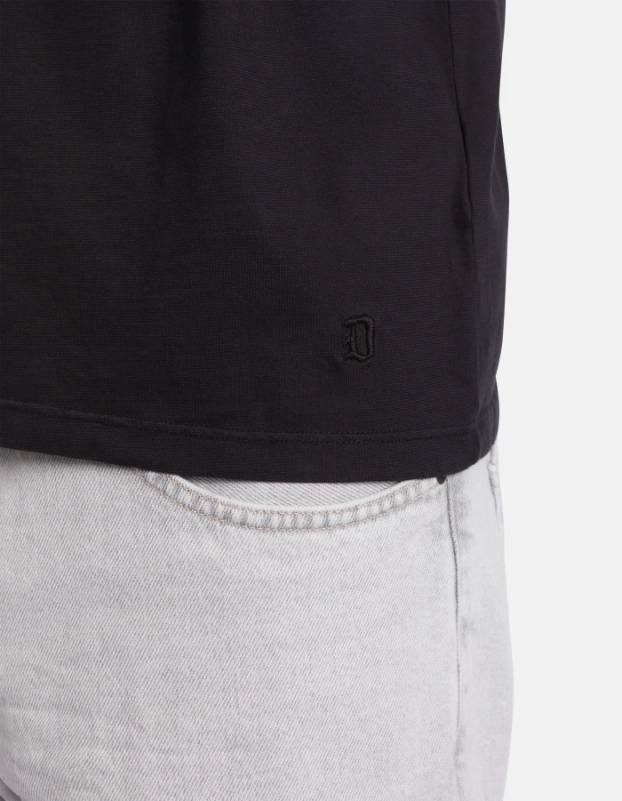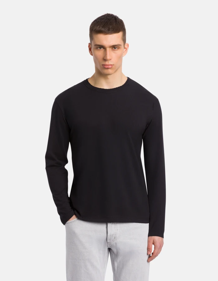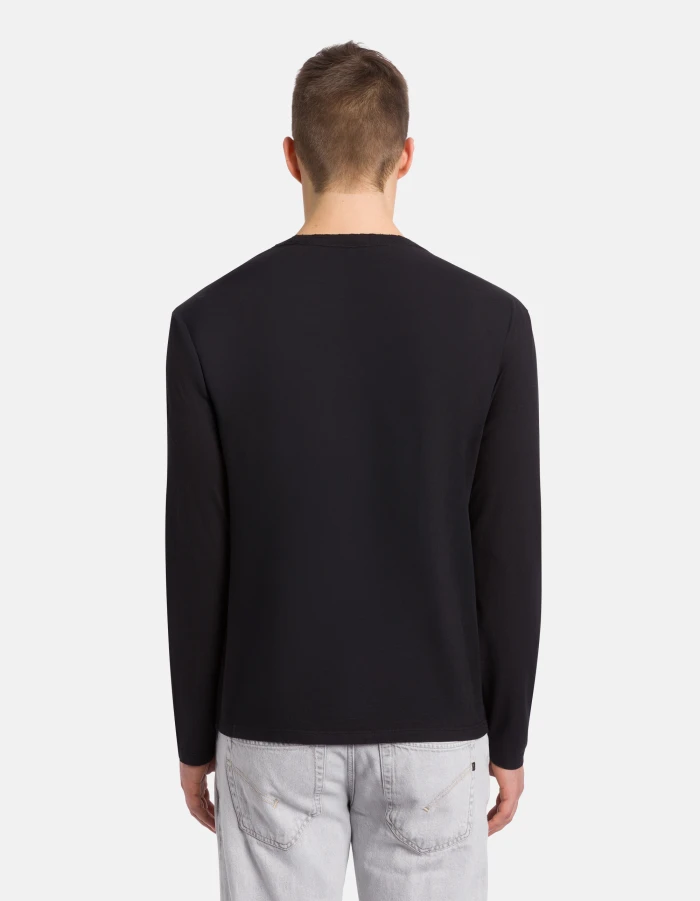 Regular-fit crew-neck T-shirt with long sleeves, raw-cut ribbed collar and embroidered D logo on the left hem. Jersey. Reactive garment dye. Dondup logo. Made in Italy