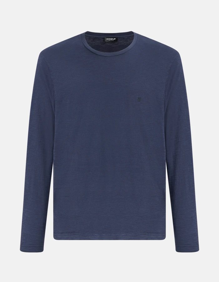 Slim-fit crew-neck T-shirt with long sleeves and D logo applique on the chest. Slub jersey. Dondup logo. Made in Italy