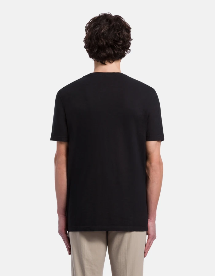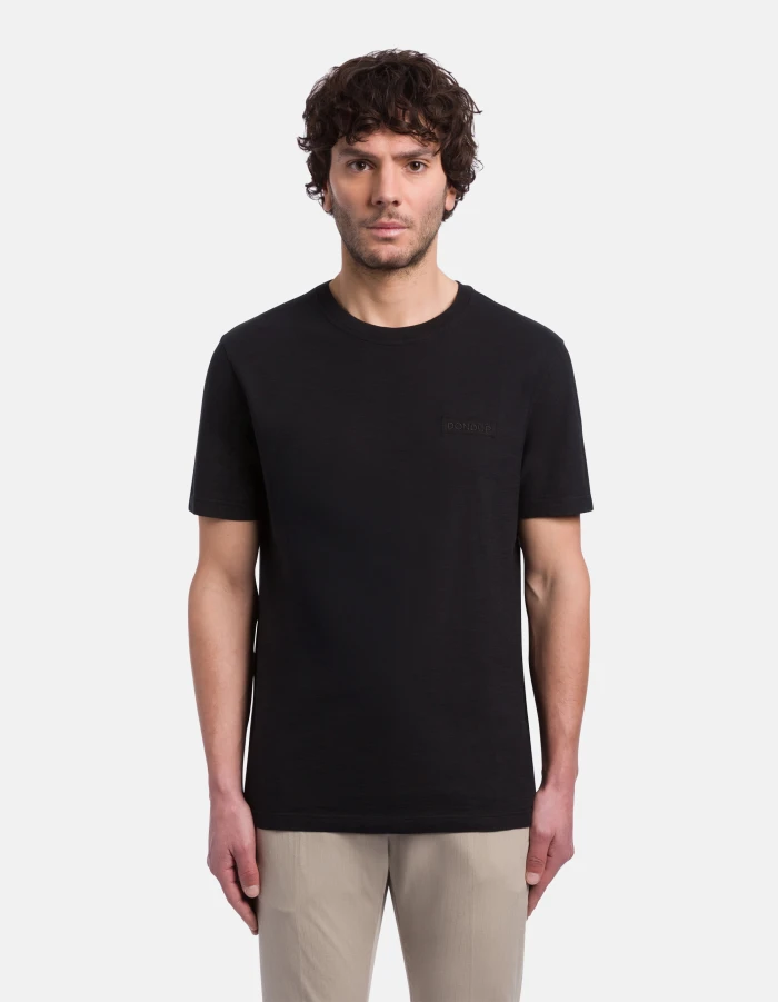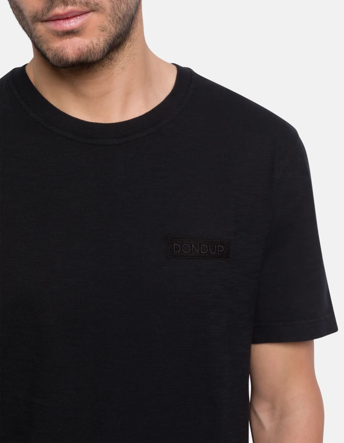 Regular-fit crew-neck T-shirt with short sleeves, ribbed collar and embroidered logo label on the left chest. Slub jersey. Dondup logo. Made in Italy