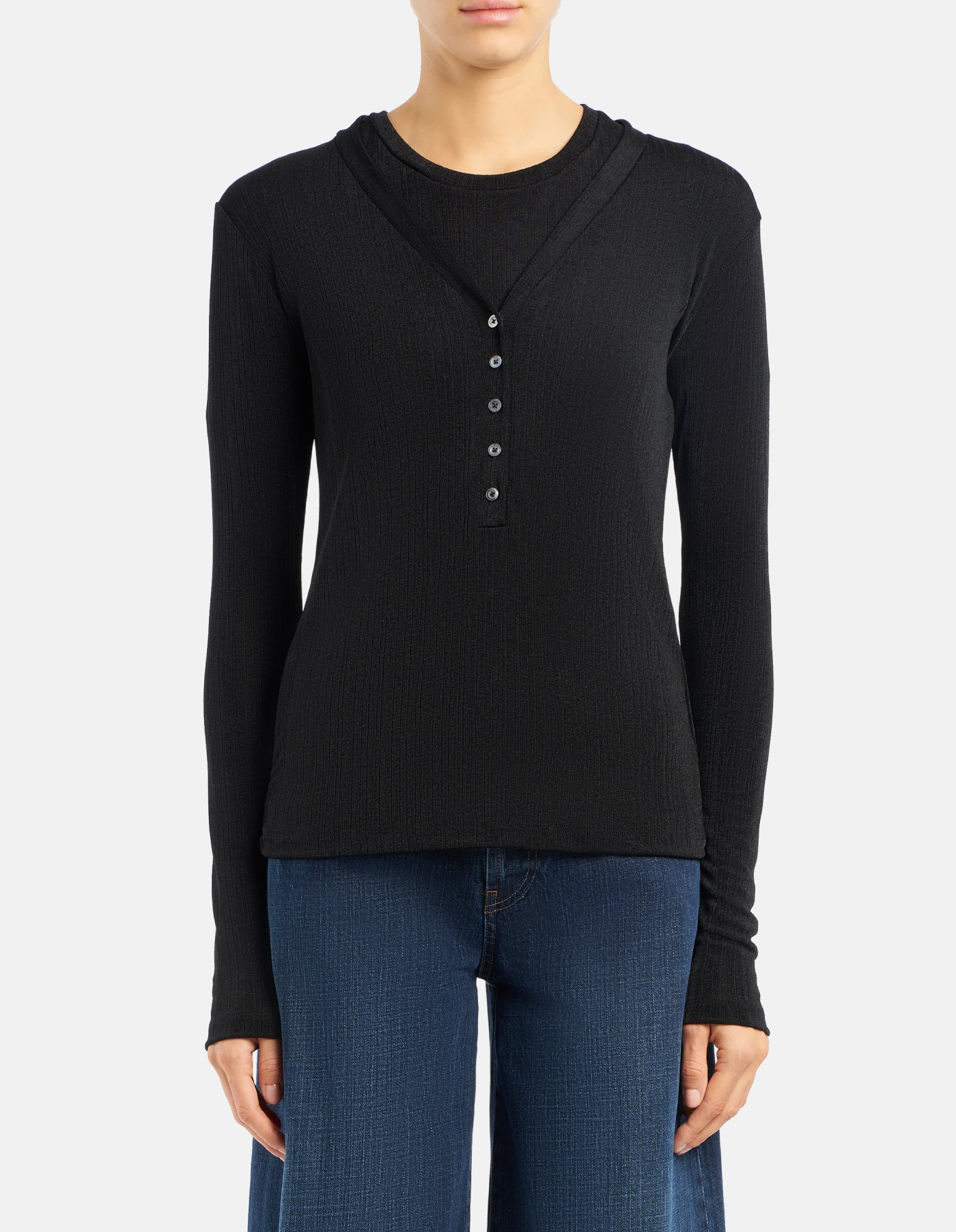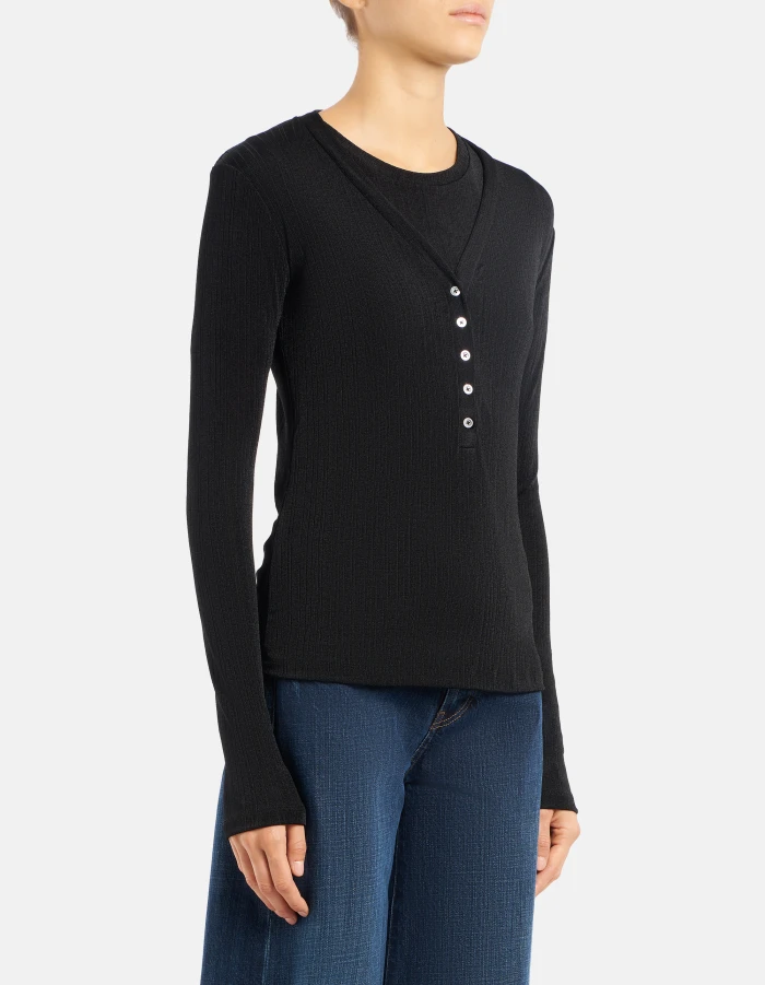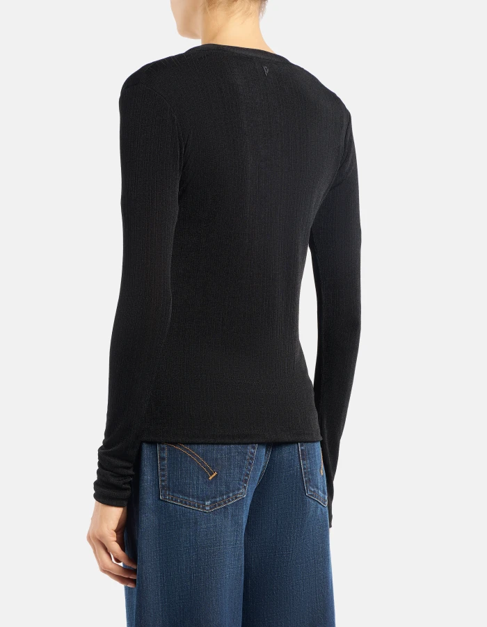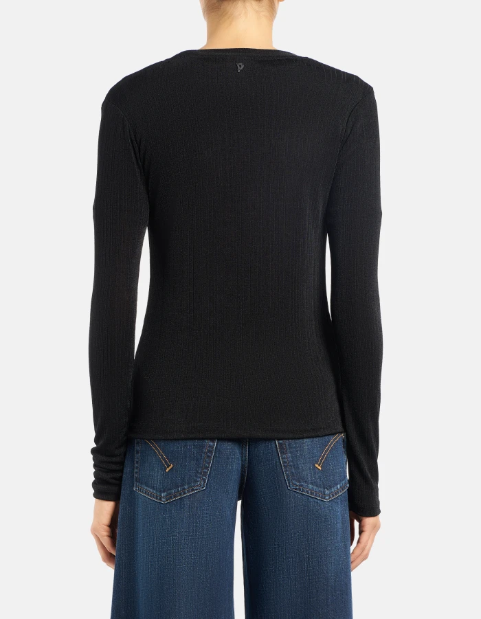 Regular-fit five-button Henley top with long sleeves and V-neck. Bright rib. Dondup logo. Made in Italy