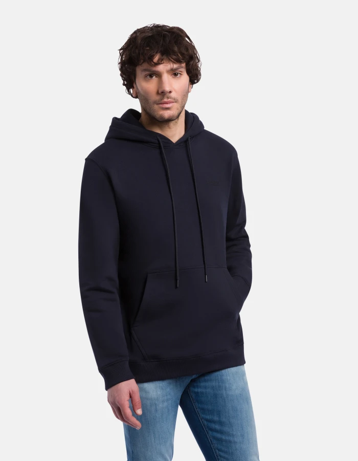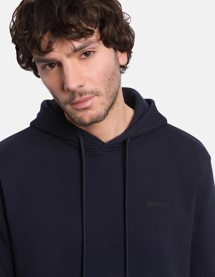 Regular-fit hoodie, long sleeves, pouch pocket and logo print on the left chest. Cotton fleece. Dondup logo. Made in Italy