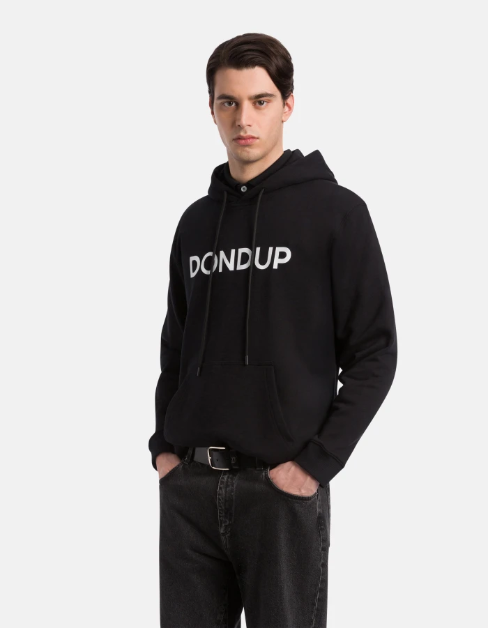 Regular-fit hoodie, long sleeves, pouch pocket and colourful logo print in the centre of the chest. Cotton fleece. Dondup logo. Made in Italy