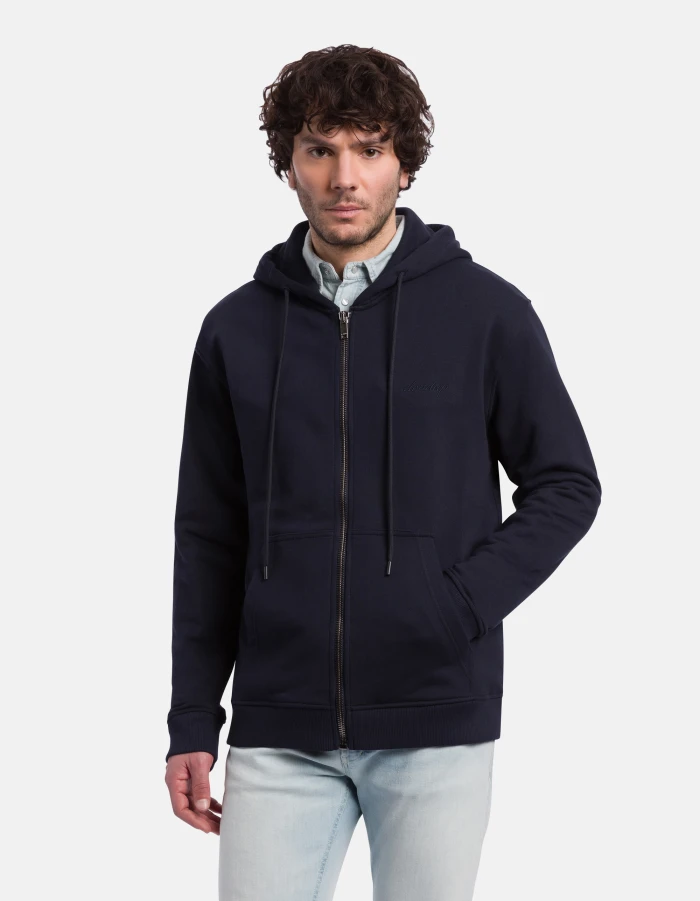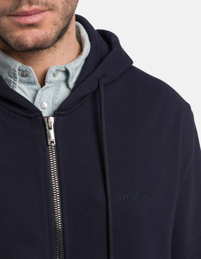 Regular-fit hoodie, long sleeves, pouch pocket, zip fastening and embroidered handwriting logo on the left chest. Cotton fleece. Dondup logo. Made in Italy