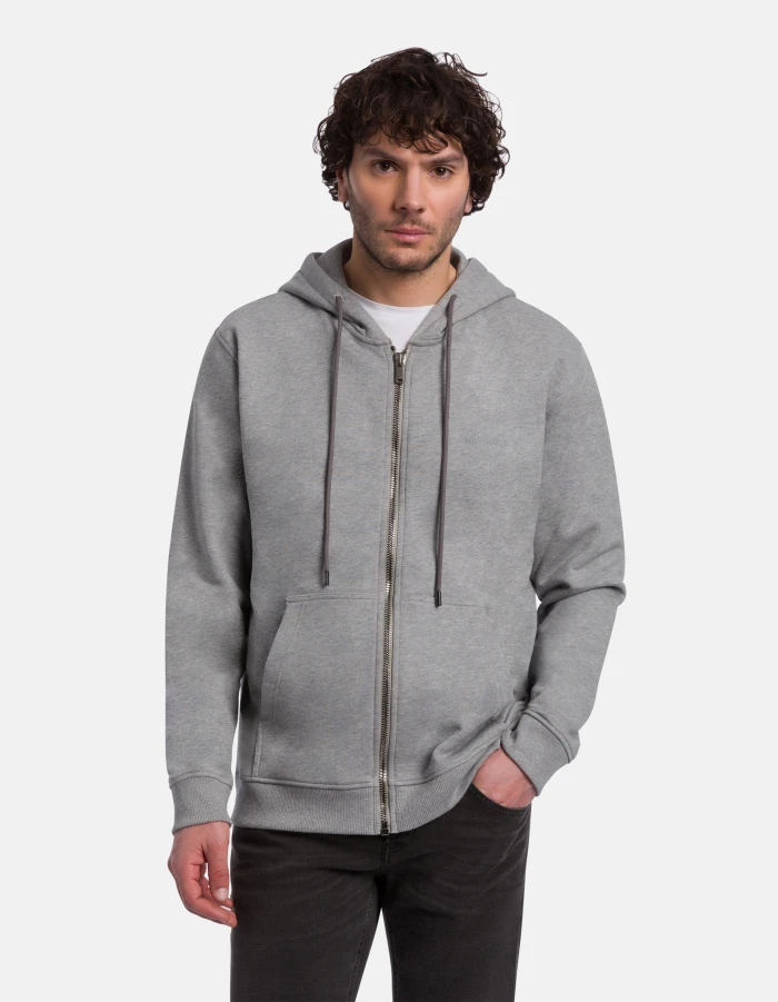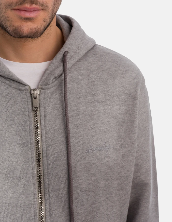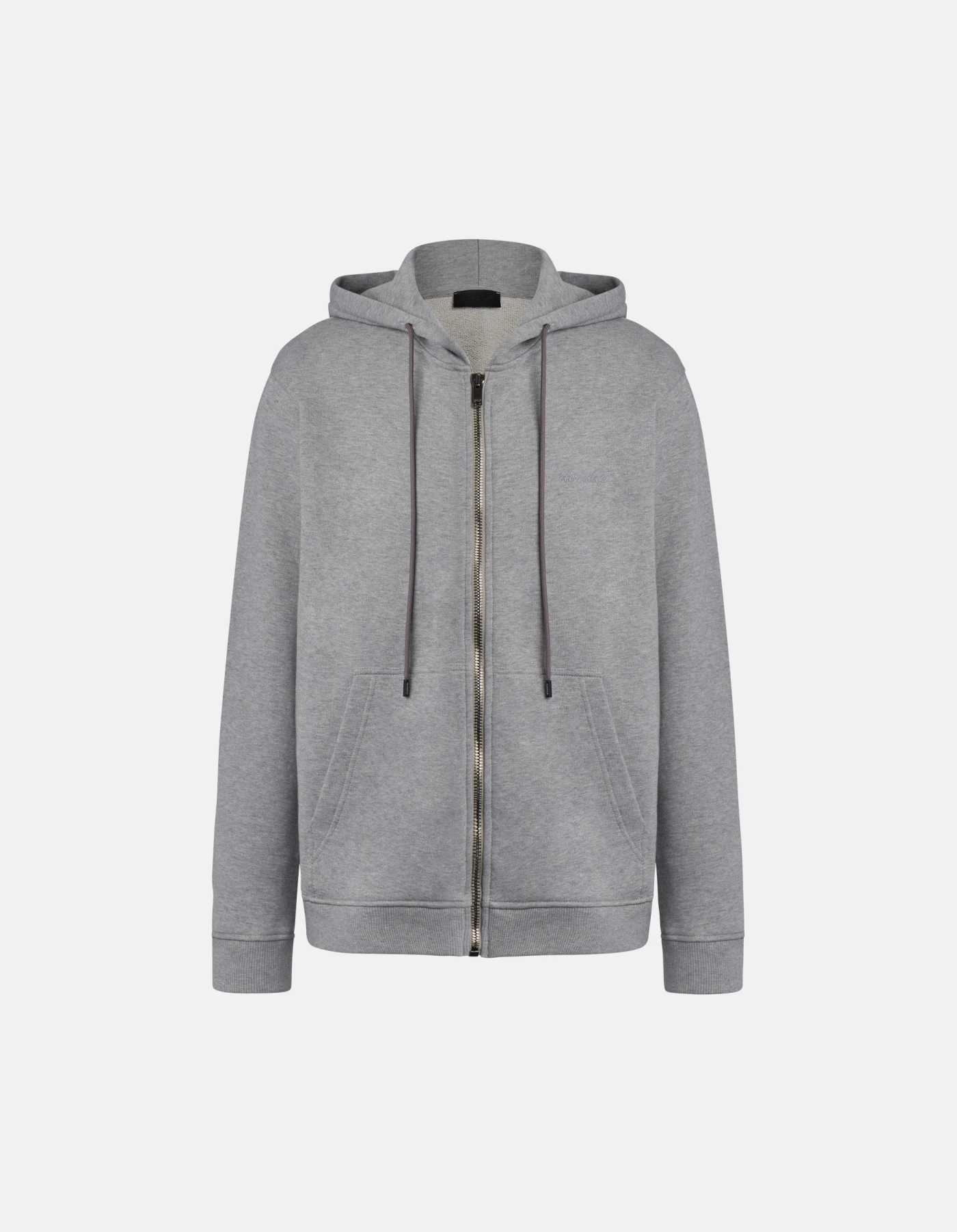 Regular-fit hoodie, long sleeves, pouch pocket, zip fastening and embroidered handwriting logo on the left chest. Cotton fleece. Dondup logo. Made in Italy