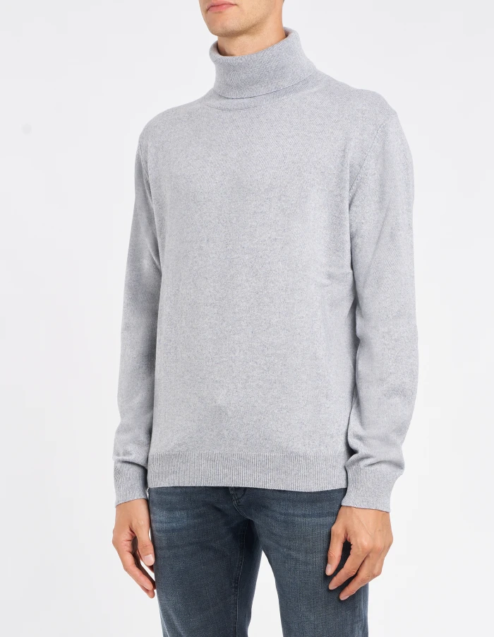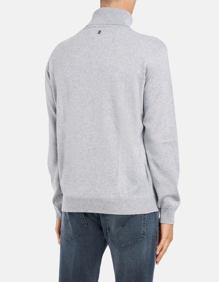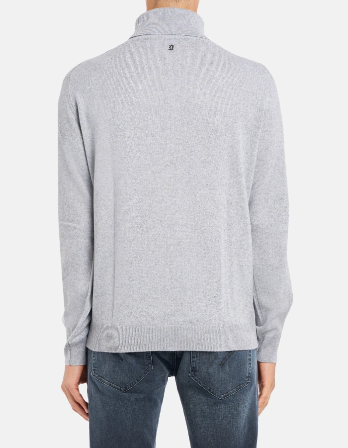 Regular-fit polo neck jumper with long sleeves and D logo appliqué on the back. Cashmere and silk. Dondup logo. Made in Italy