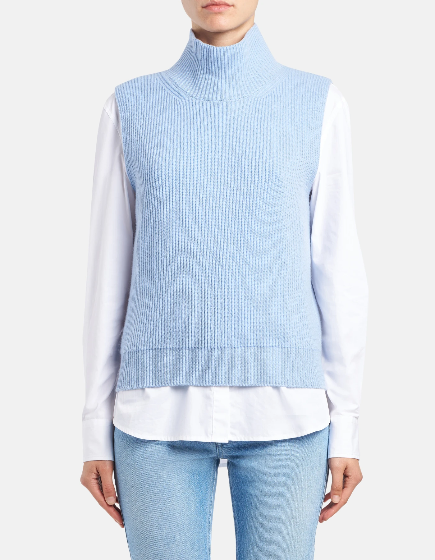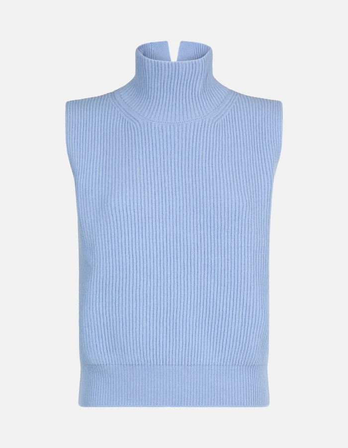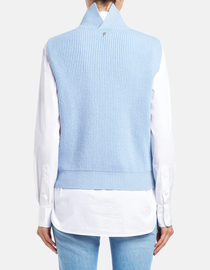 Regular-fit sleeveless polo neck jumper with central back opening neck. Logo applique at the back. Fisherman’s rib. Dondup logo. Made in Italy