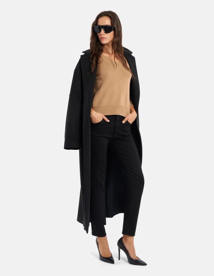 Regular-fit V-neck jumper sweater in wool cashmere stocking stitch
