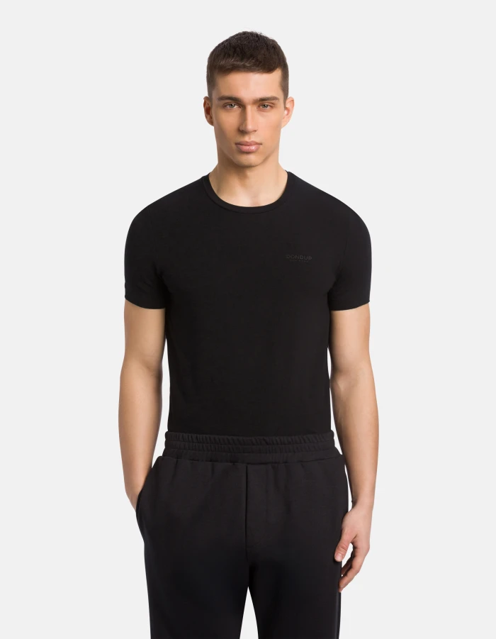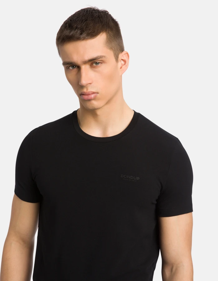 Slim-fit crew-neck T-shirt with short sleeves and logo on the left chest. Stretch jersey. Dondup logo. Made in Italy