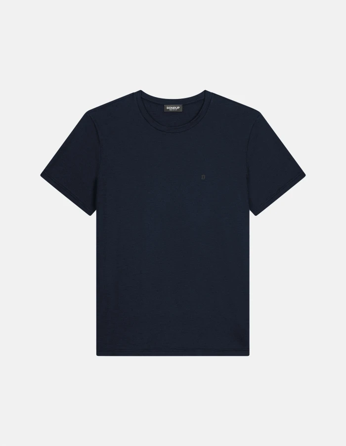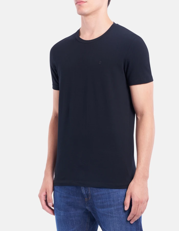 Slim-fit crew-neck T-shirt with short sleeves and D logo applique on the chest. Stretch jersey. Dondup logo. Made in Italy